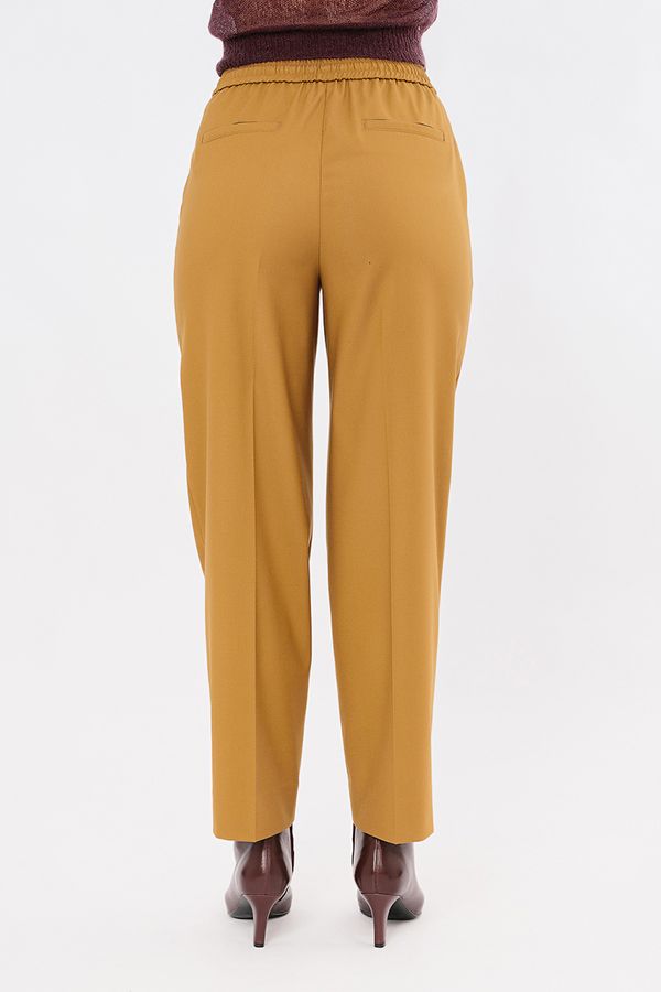 Классическая модель брюк со стрелками. Детали: брюки с высокой посадкой, двойная застежка на крючки и потайную пуговицу, молния. Вытачки, боковые карманы. Сзади имитация карманов. В поясе резина на сборке, кулиска. Длина по внутреннему шву - 71,5 см. Ширина низа - 20,5 см. *Числовые параметры соответствуют размеру 44. Размер модели на фото: 44. Параметры модели: 90-64-97. Рост модели на фото: 175 см.