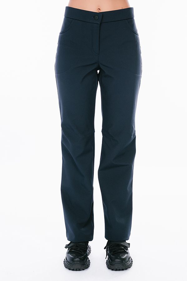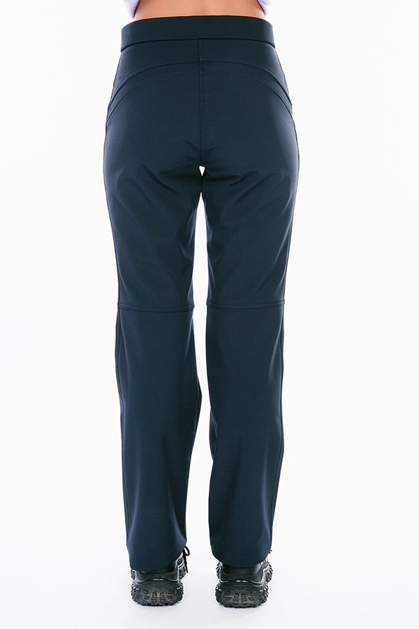 Брюки в спортивном стиле из синей плащевки на флисе. Детали спереди: застежка на молнию и пуговицу, боковые карманы, в пояс вставлена эластичная лента Детали сзади: кокетка.Длина по внутреннему шву - 84 см. Ширина низа - 23,5 см. Числовые параметры соответствуют размеру 48. Размер модели на фото: 44. Параметры модели: 86-63-94. Рост модели на фото: 173 см.