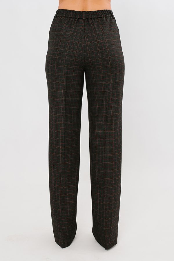 Элегантные  брюки в полной длине со стрелками из костюмной ткани в клетку. Детали: спереди застежка на молнию и пуговицу, оригинальные карманы с горизонтальным входом,  по спинке в поясе резина на сборке , на поясе шлевки. Длина по внутреннему шву - 87 см. Ширина по линии низа: 25,5 см. *Числовые параметры соответствуют размеру 44. Размер модели на фото: 44. Параметры модели: 86-63-94. Рост модели на фото: 173 см.