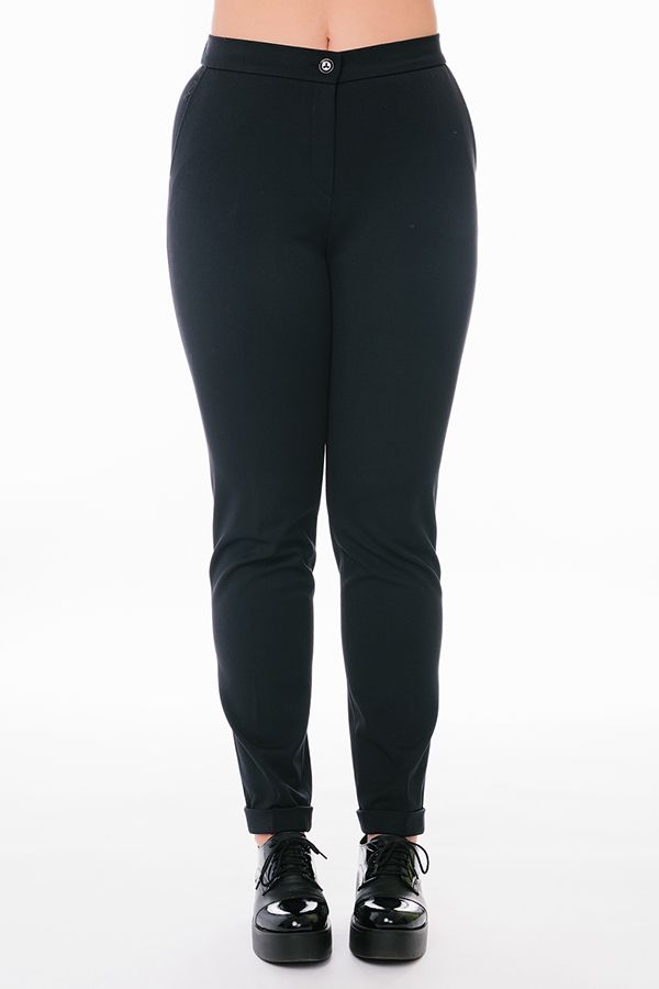 Модель в классическом стиле со стрелками из ткани габардин на флисе. Детали: застежка на молнию и пуговицу, карманы с отрезным бочком. Сзади  в поясе резина. По низу брюк отвороты. Длина по внутреннему шву - 72 см. Ширина низа - 17 см. Числовые параметры соответствуют размеру 44. Размер модели на фото: 46. Параметры модели: 90-68-99. Рост модели на фото: 175 см.