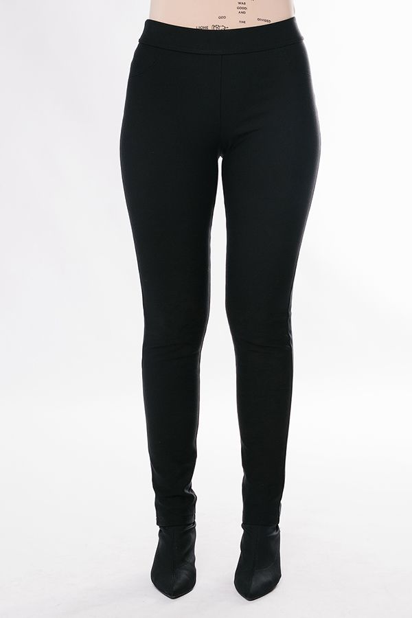 Брюки плотноприлегающего силуэта из трикотажного полотна на флисе.  Детали: модель без застежки на трикотажном поясе (в поясе резина 4,0 см), спереди имитация боковых карманов, имитация гульфика, сзади кокетка. Практичная модель для офисных сотрудников. Идеальная посадка на фигуры больших размеров.  Длина по внутреннему шву - 79 см. Ширина низа - 13 см. Числовые параметры соответствуют размеру 42. Размер модели на фото: 46. Параметры модели: 86-64-100. Рост модели на фото: 174 см.