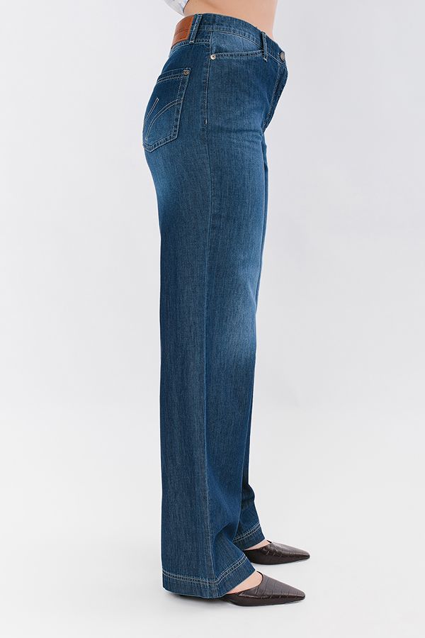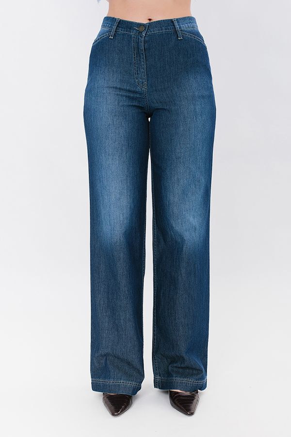 Модные молодежные джинсы из  тонкого  денима. Детали: спереди застежка на болт и молнию, оригинальные боковые карманы с хольнитенами, сзади под кокеткой накладные карманы с фигурной строчкой, на поясе шлевки. Длина по внутреннему шву - 85 см. Ширина по линии низа -  25 см. *Числовые параметры соответствуют размеру 42. Размер модели на фото: 46. Параметры модели: 94-65-100. Рост модели на фото: 175 см.