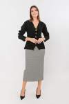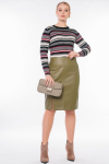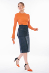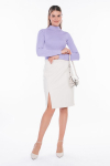 Юбка выполнена из трикотажного полотна, с рельефными отстрочками по передней и задней половинке. Сзади потайной замок в среднем шве. Данный фасон подходит для разных типов фигуры. В составе ткани высокое содержание вискозы, что обеспечивает изделию комфортность и мягкость. Длина изделия: 59 см. Размер модели на фото: 50. Параметры модели: 97-77-109. Рост модели на фото: 169 см.