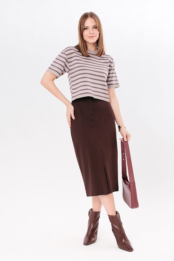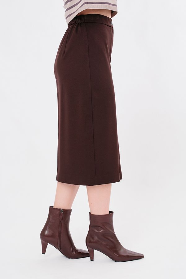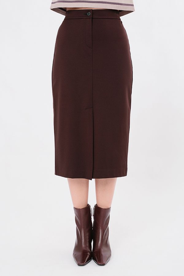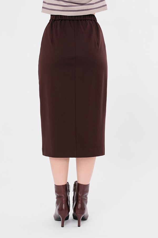 Юбка из  трикотажного полотна на подкладке. Детали: Спереди застежка на молнию и пуговицу, в среднем шве шлица. Сзади вытачки в поясе резина. Длина изделия 77 см. Размер модели на фото: 44.  Параметры модели: 90-64-97. Рост модели на фото: 175 см.