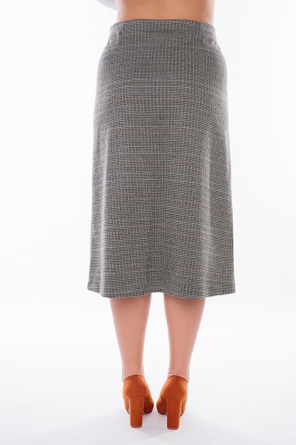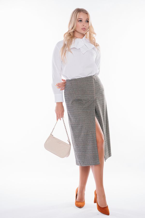 Юбка оригинального кроя без пояса из трикотажного полотна. Длина миди. По передней половинке запах, косая выточка, функциональная металлическая молния. Застежка на две  потайные пуговицы. По спинке, вытачки. Длина изделия, 80см. Размер модели на фото 48. Параметры модели: 94-68-102. Рост модели на фото: 175 см.