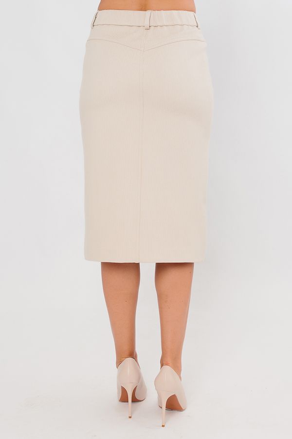 Современная молодежная юбка из трикотажного полотна под "вельвет". Детали: Спереди застежка на молнию и пуговицу, карманы с горизонтальным входом, в среднем шве шлица. Сзади кокетка с двойной отстрочкой. В поясе по спинке резина, на поясе шлевки. Длина изделия 68 см. Размер модели на фото: 44.  Параметры модели: 86-63-94. Рост модели на фото: 173 см.