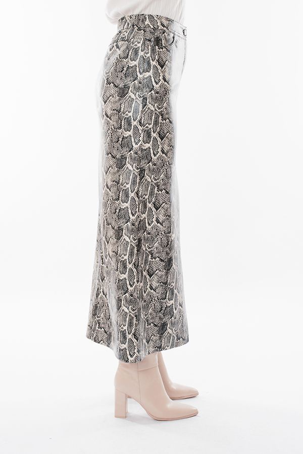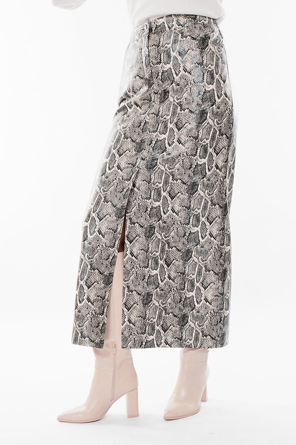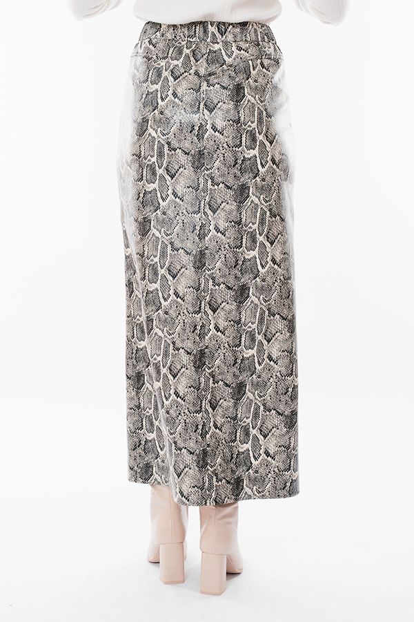 Встречаем 2025 год-ГОД ЗМЕИ! в эксклюзивной юбке-миди из эко-кожи под ПИТОНА! Детали: Спереди застежка на молнию и пуговицу, карманы с горизонтальным входом, в среднем шве шлица. Сзади кокетка с двойной отстрочкой. В поясе по спинке резина. Длина изделия 68 см. Размер модели на фото: 44.  Параметры модели: 86-63-94. Рост модели на фото: 173 см.