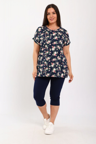 Уютный комплект с бриджами: туника из 100% хлопка. Крой прямой, разрезы по бокам, рукав короткий с манжетом. Мягкие бриджи с добавлением лайкры (95% хлопок, 5% лайкра), облегающие по ноге, на резинке. Прилегающие бриджи и свободная туника - идеальное сочетание для любого типа фигуры!