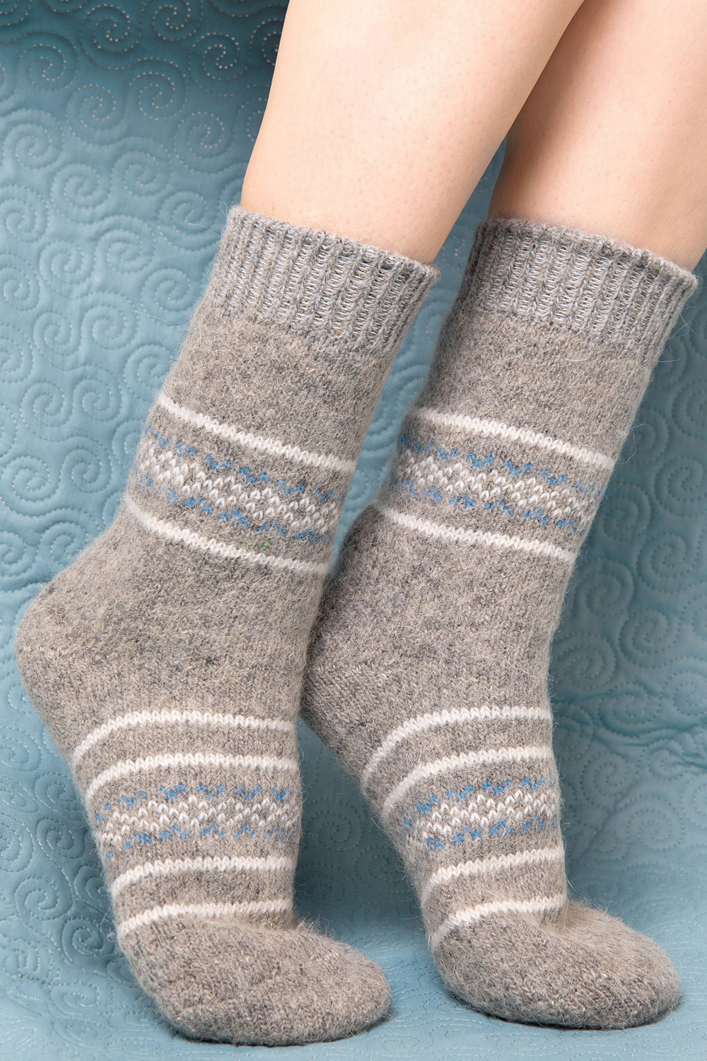 Шерсть имеет уникальную способность быстро согревать и длительное время поддерживать правильную терморегуляцию. Она хорошо пропускает воздух и позволяет коже дышать. Также быстро отводит влагу, оставаясь при этом сухой. Шерстяные носки отлично тянутся, благодаря чему не сковывают движений. Благодаря полиамидным нитям имеют повышенную прочность изделия от истираний и разрывов, что значительно увеличивает продолжительность их службы. Шерстяные носки достаточно плотные, при этом мягкие, не раздражают, не вызывают зуда и не колются. Имеют широкую резинку и связаны с учетом анатомической формы ступни и голеностопа. В составе натуральной шерсти находятся природные соединения и ланолин, обладающие антисептическим эффектом. Это позволяет им оставаться свежими даже после нескольких дней ношения.
