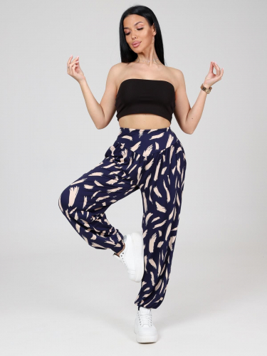 Брюки женские из трикотажа лапша. Прямые, широкие от бедра. Пояс цельнокроеный. По боковым швам разрезы выше колена.