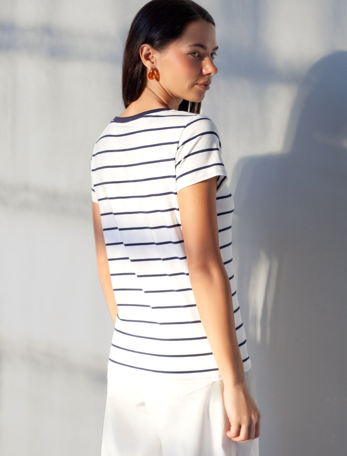 Базовая футболка в полоску из премиального хлопка с V образным вырезом