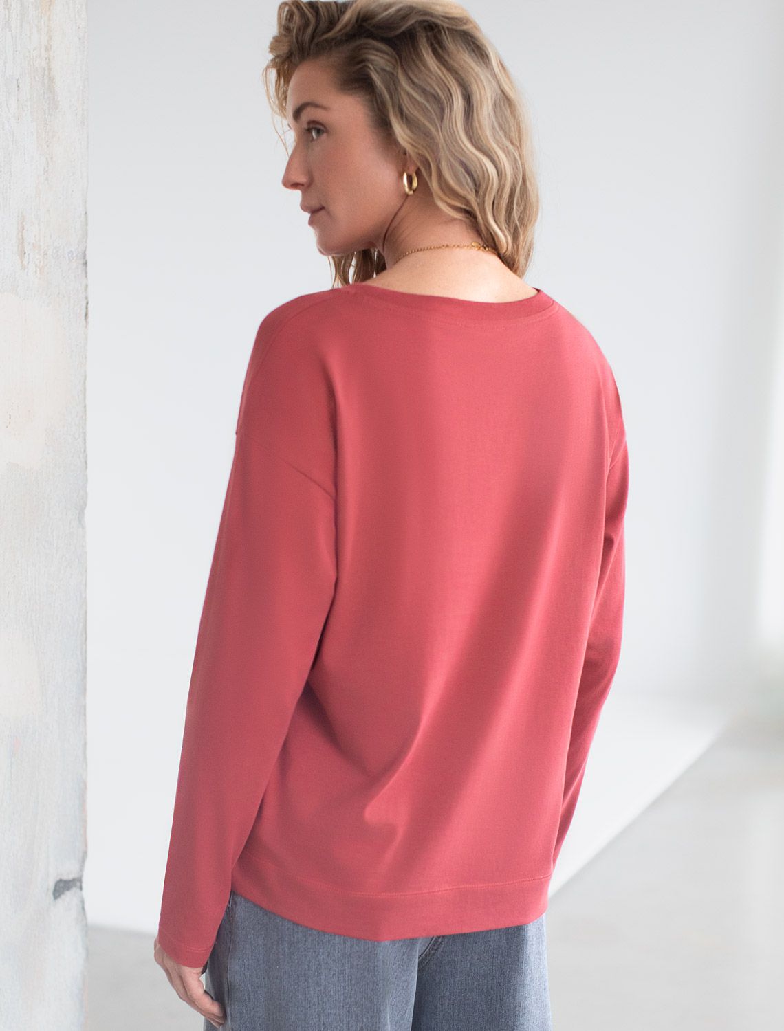 Свободный лонгслив темно-кораллового цвета с длинным рукавом выполнен из премиального хлопка с добавлением эластана, что обеспечивает комфорт и приятные тактильные ощущения. Однотонная расцветка и круглый ворот создают стильный и универсальный образ, который подойдет для повседневного использования. Спущенная линия плеча придает лонгу современный и расслабленный силуэт. Такой лонгслив идеально подходит для весеннего и летнего сезона благодаря легкой и дышащей ткани. Большие размеры позволяют выбрать оптимальный вариант на любую фигуру, обеспечивая свободу движений и удобство на каждый день. Этот комфортный лонгслив станет отличной базой в гардеробе, сочетаясь с различными стилями одежды и создавая простой, но эффектный образ.