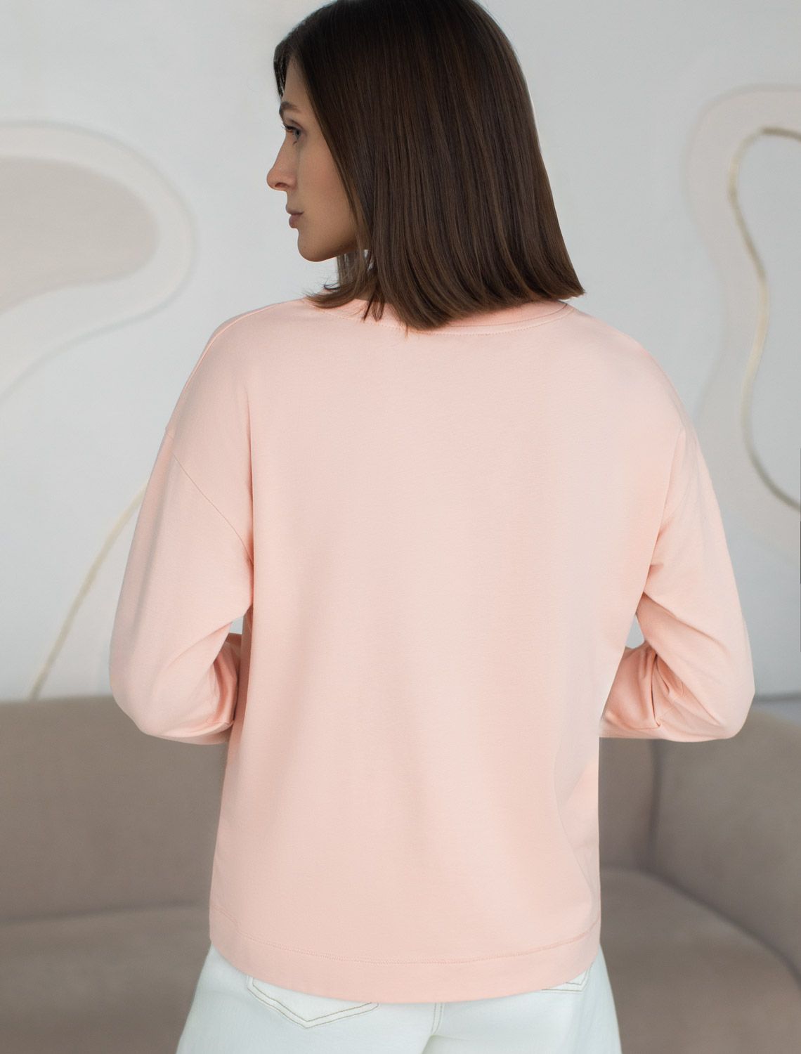Свободный лонгслив пудрового цвета с длинным рукавом выполнен из премиального хлопка с добавлением эластана, что обеспечивает комфорт и приятные тактильные ощущения. Однотонная расцветка и круглый ворот создают стильный и универсальный образ, который подойдет для повседневного использования. Спущенная линия плеча придает лонгу современный и расслабленный силуэт. Такой лонгслив идеально подходит для весеннего и летнего сезона благодаря легкой и дышащей ткани. Большие размеры позволяют выбрать оптимальный вариант на любую фигуру, обеспечивая свободу движений и удобство на каждый день. Этот комфортный лонгслив станет отличной базой в гардеробе, сочетаясь с различными стилями одежды и создавая простой, но эффектный образ.