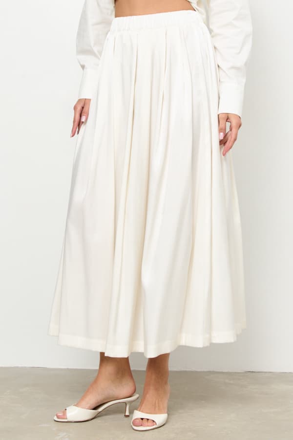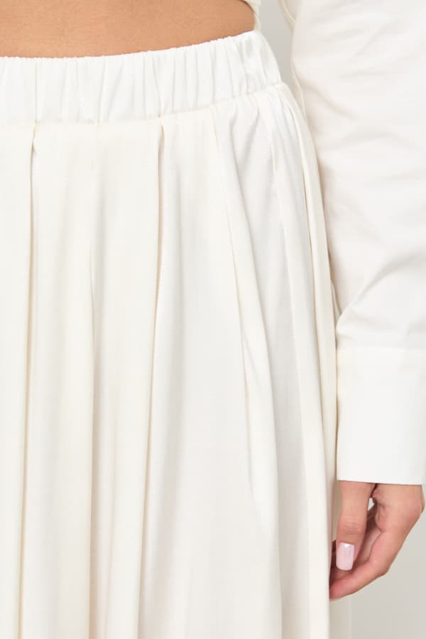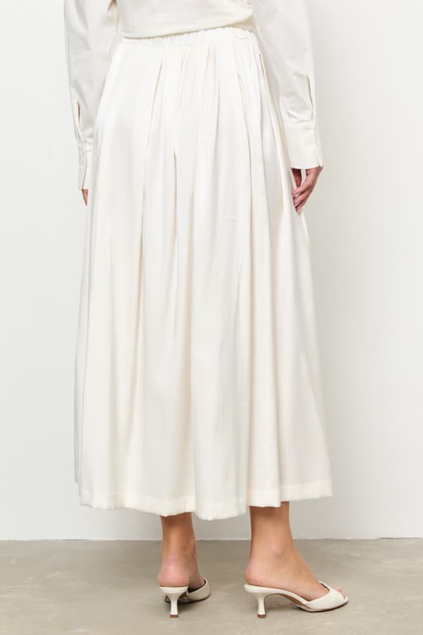 Юбка из вискозной ткани свободного силуэта со складками по линии талии. Пояс с эластичной резинкой.