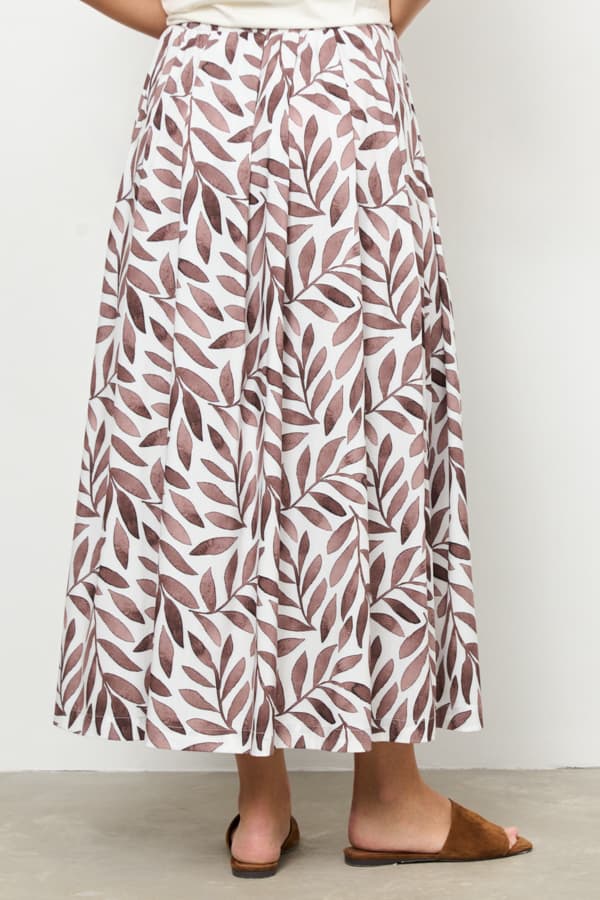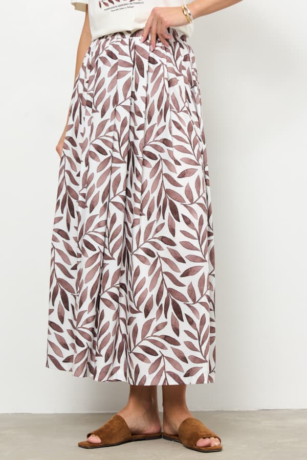 Юбка из вискозной ткани свободного силуэта со складками по линии талии. Пояс с эластичной резинкой.