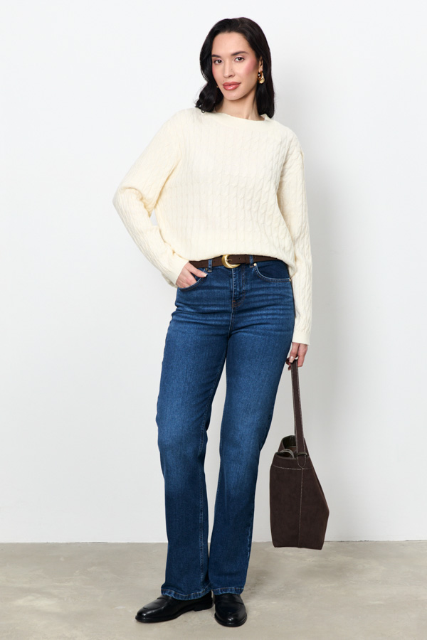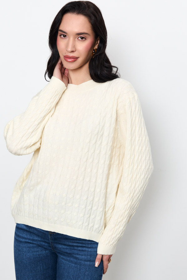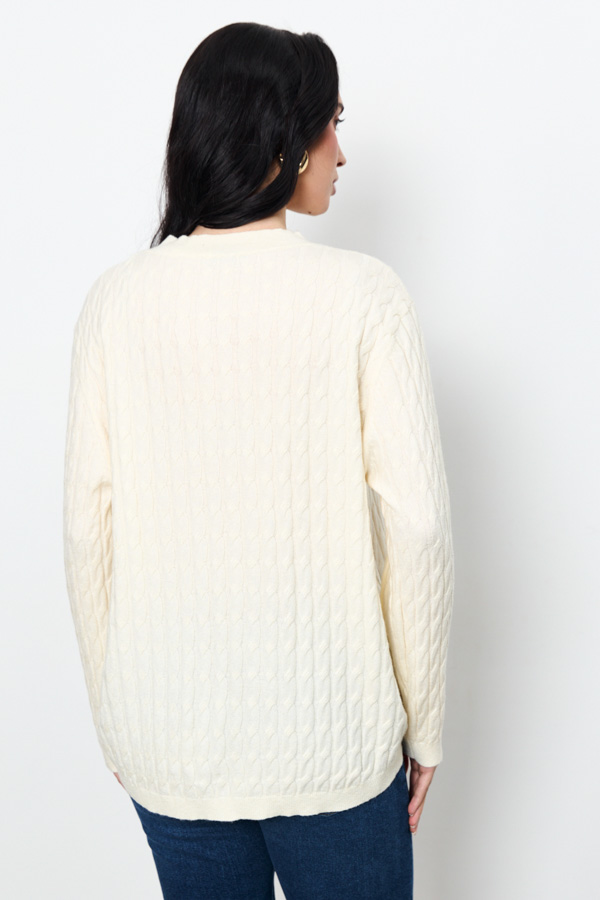 Этот джемпер свободного силуэта станет вашим любимым элементом гардероба. Изюминка образа – косы, добавляющие фактуры и уюта. Асимметричный низ придает динамичности и легкости, а длинные втачные рукава завершают образ. Круглый вырез горловины, низ изделия и низ рукавов оформлены резинкой. Изделие выполнено из мягкой пряжи.