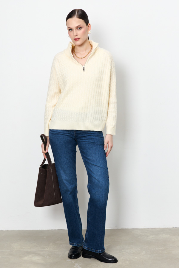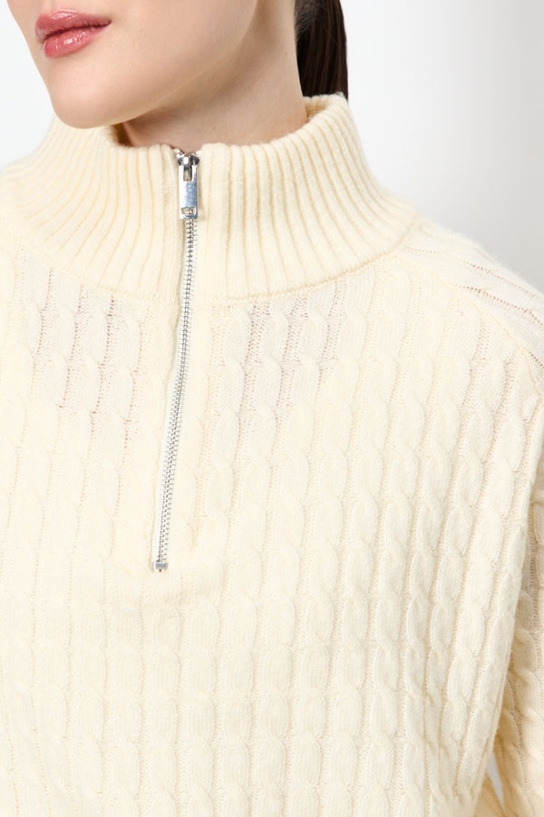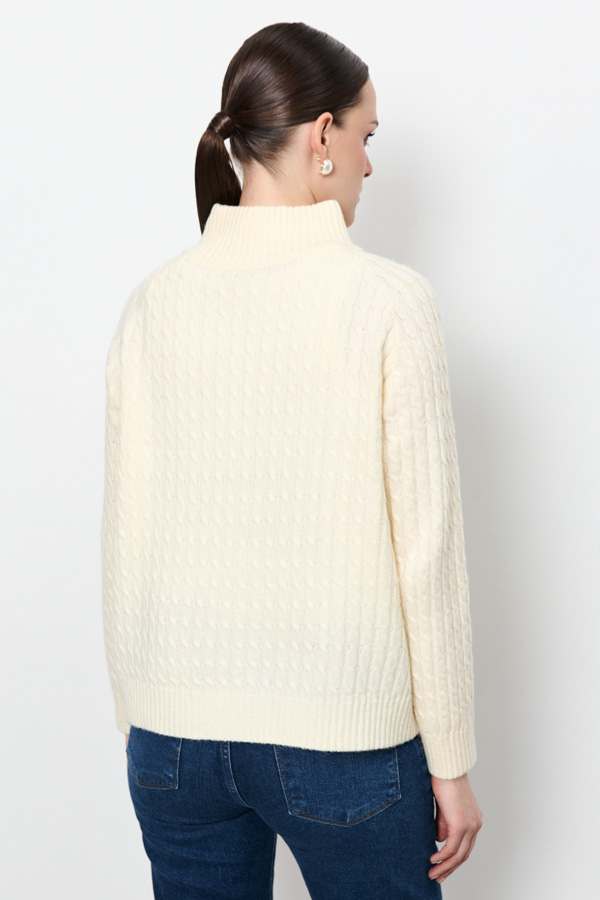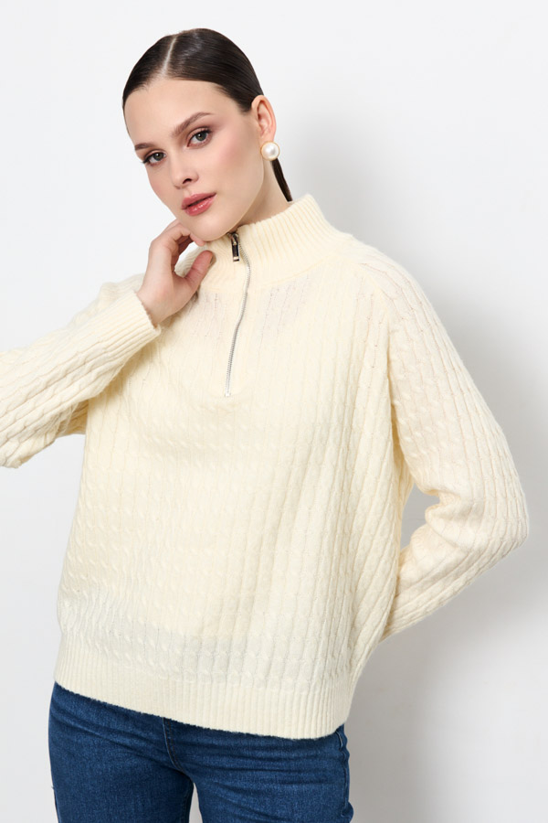 Представляем вам уютный и стильный джемпер, который станет незаменимой вещью в вашем гардеробе! Свободный силуэт дарит максимальный комфорт и не стесняет движений. Изюминка образа – косы, добавляющие фактуры и уюта. Удобный рукав реглан обеспечивает идеальную посадку по плечам. Спереди джемпер застегивается на эффектную металлическую молнию, которая добавляет современный акцент. Воротник-стойка надежно защитит от ветра. Низ изделия и манжеты рукавов оформлены резинкой. Этот джемпер – идеальный выбор для тех, кто ценит комфорт, качество и актуальный дизайн! Изделие выполнено из меланжевой пряжи.