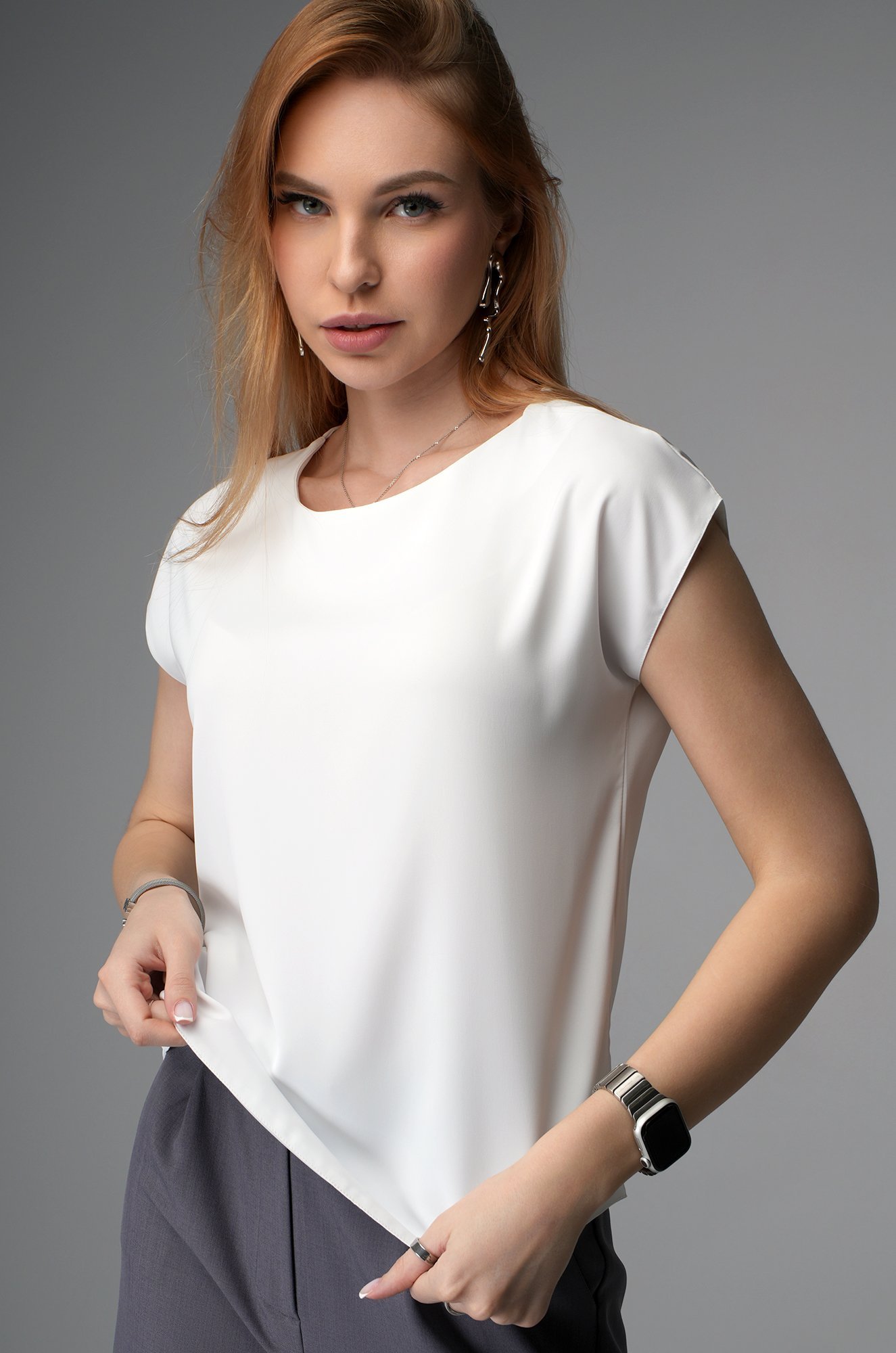 Шелковая белая блузка подойдёт для деловых встреч и рабочих дней — в ней легко выглядеть собранно и стильно.