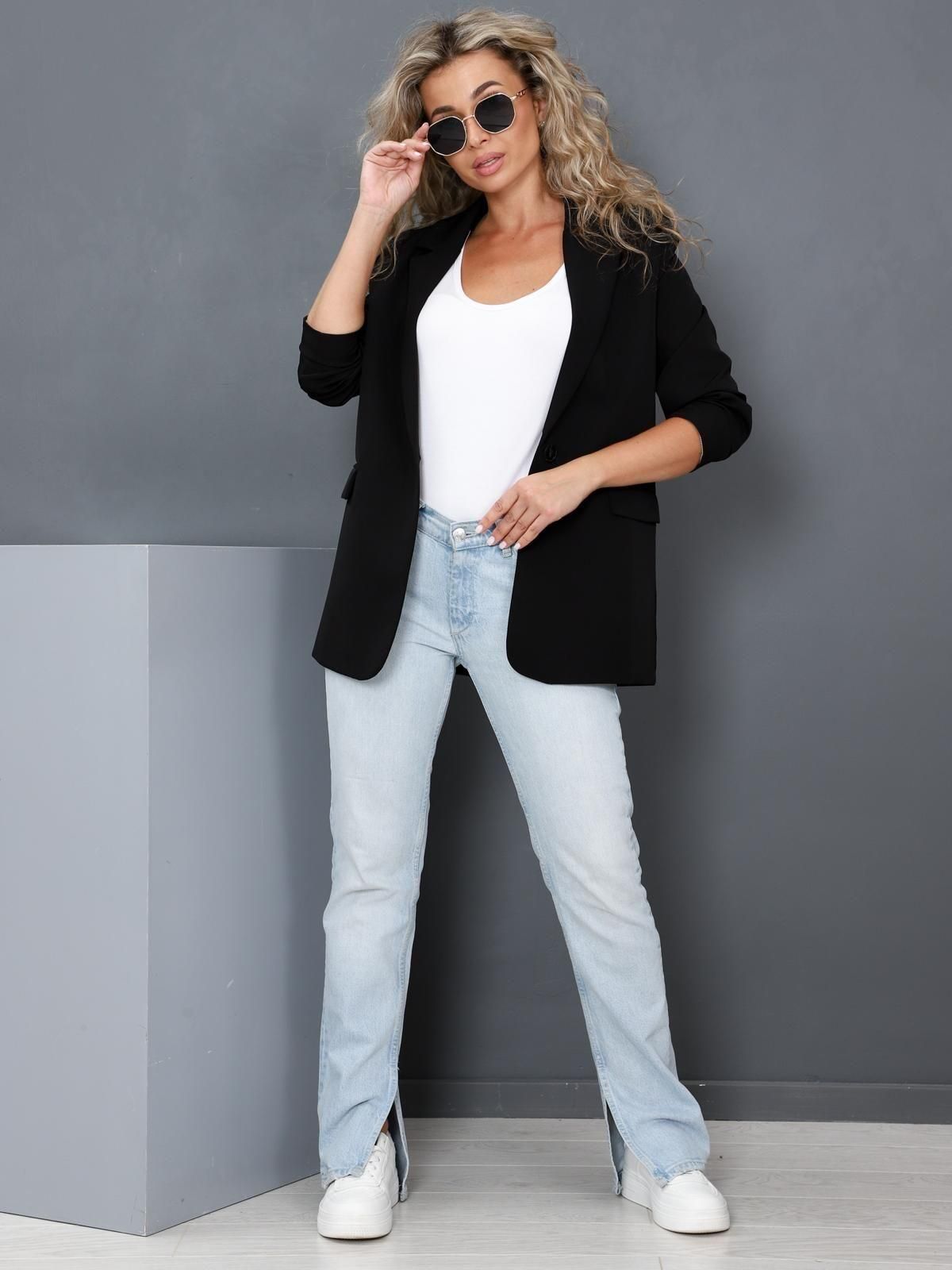 Женская майка выполнена из трикотажного полотна "вискоза". Майка полу прилегающего силуэта, с глубоким вырезом и широкими лямками. Горловина майки и проймы обработаны бейкой.