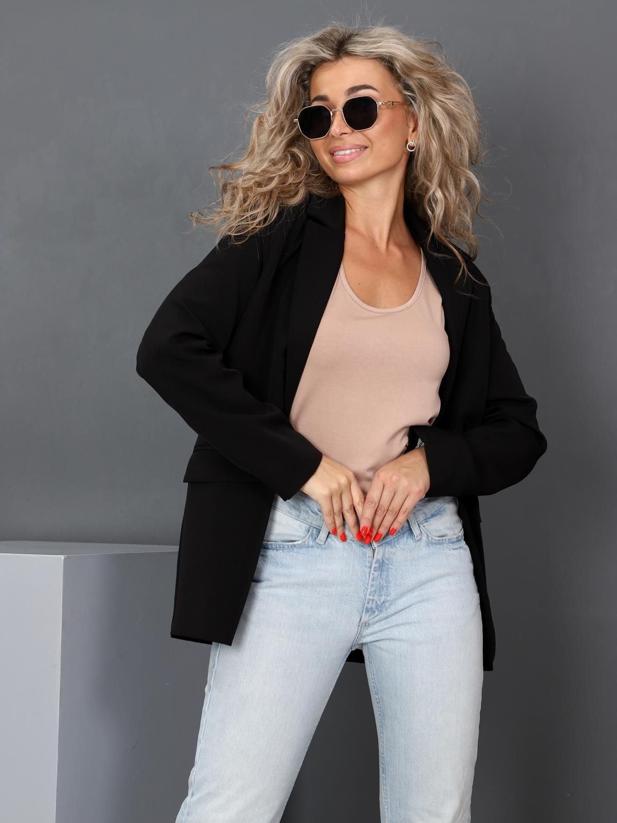 Женская майка выполнена из трикотажного полотна "вискоза". Майка полу прилегающего силуэта, с глубоким вырезом и широкими лямками. Горловина майки и проймы обработаны бейкой.