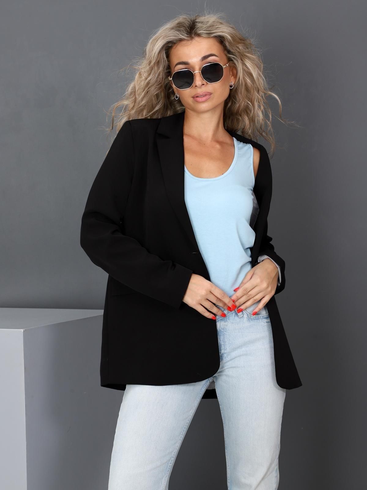 Женская майка выполнена из трикотажного полотна "вискоза". Майка полу прилегающего силуэта, с глубоким вырезом и широкими лямками. Горловина майки и проймы обработаны бейкой.