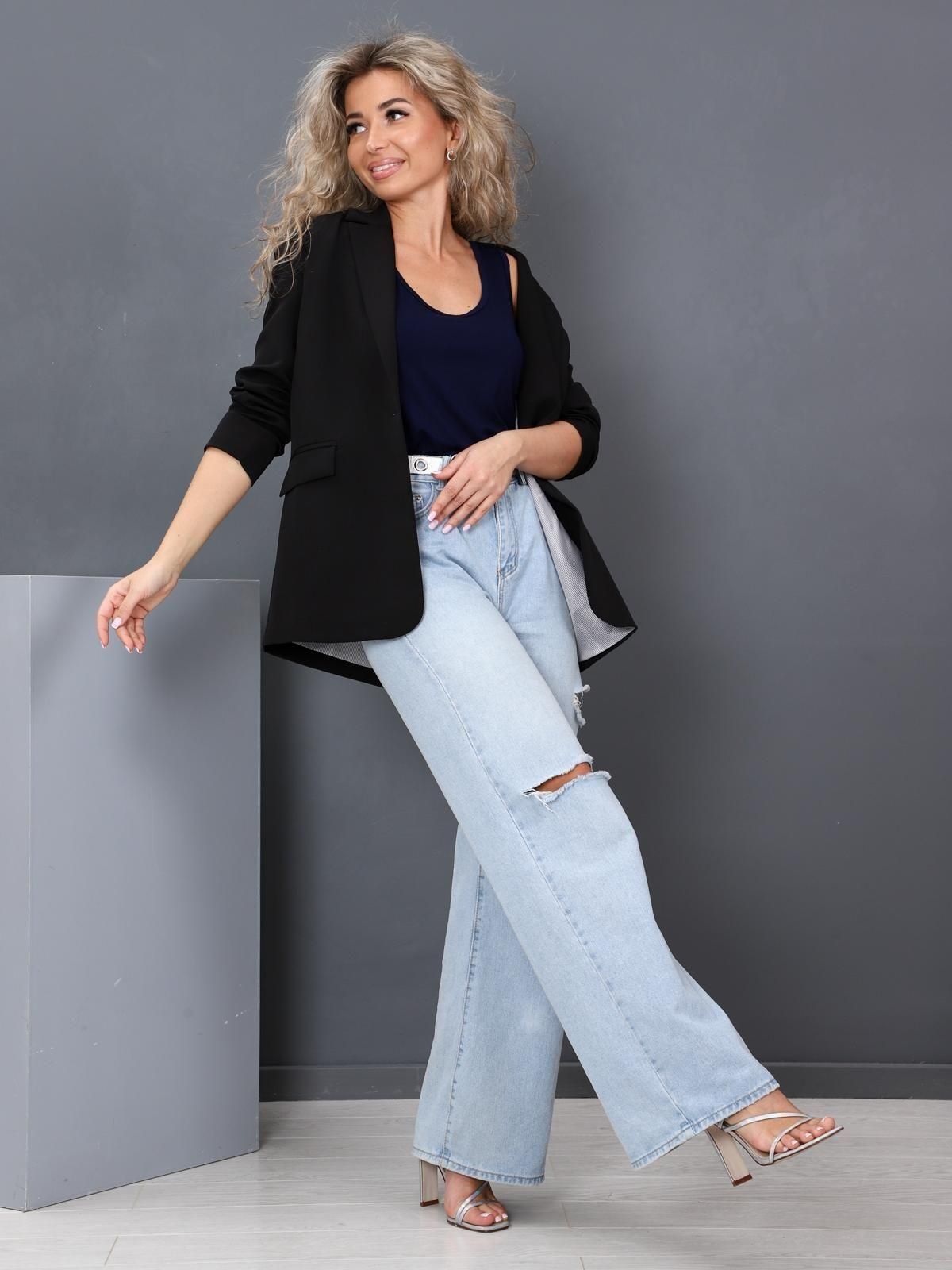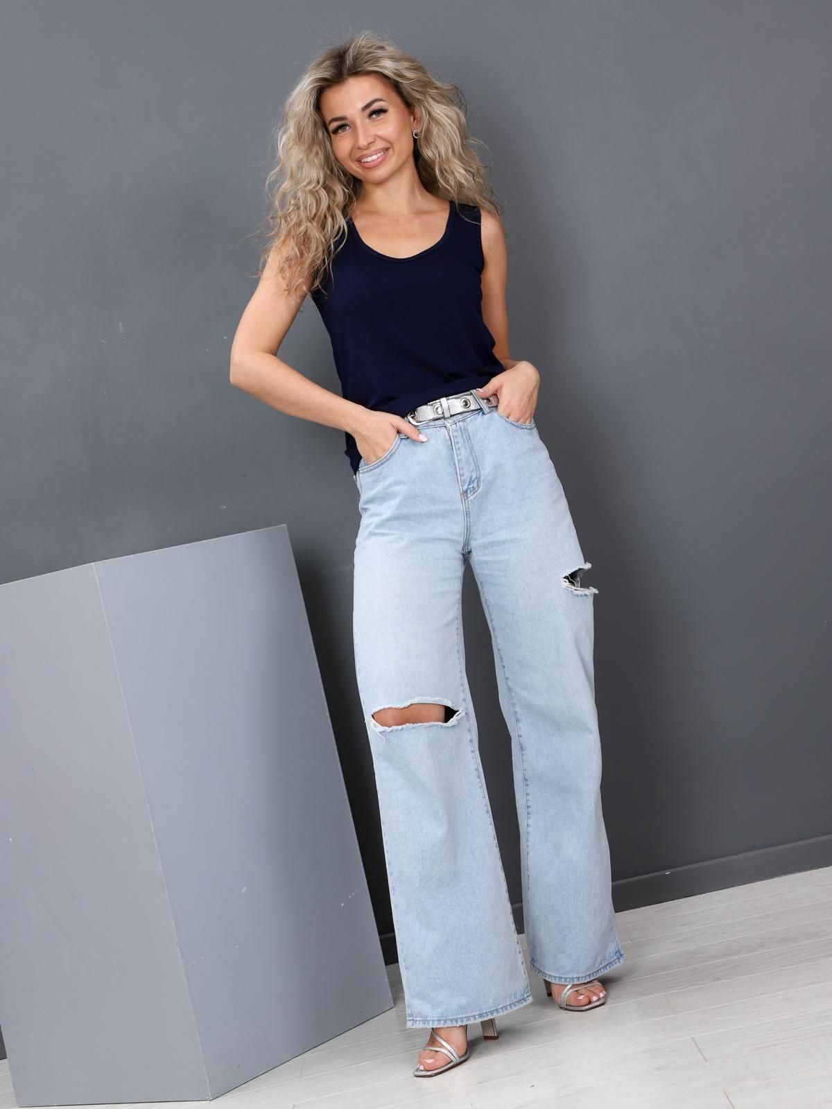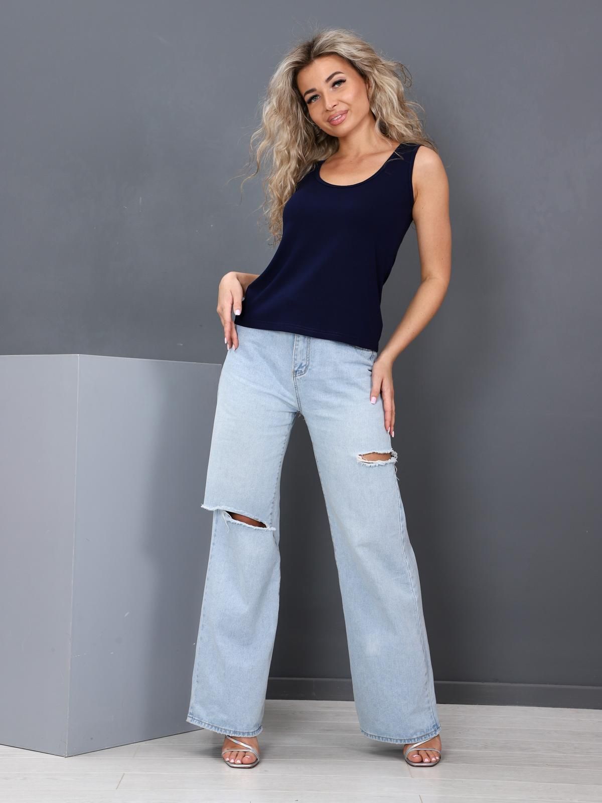 Женская майка выполнена из трикотажного полотна "вискоза". Майка полу прилегающего силуэта, с глубоким вырезом и широкими лямками. Горловина майки и проймы обработаны бейкой.