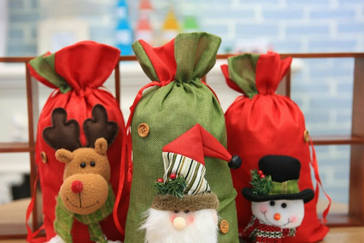 Новогодний мешок для подарков изготовлен из нетканого материала и выглядит как рождественский подарок. Эти рождественские украшения придадут вам самый особый рождественский вкус.