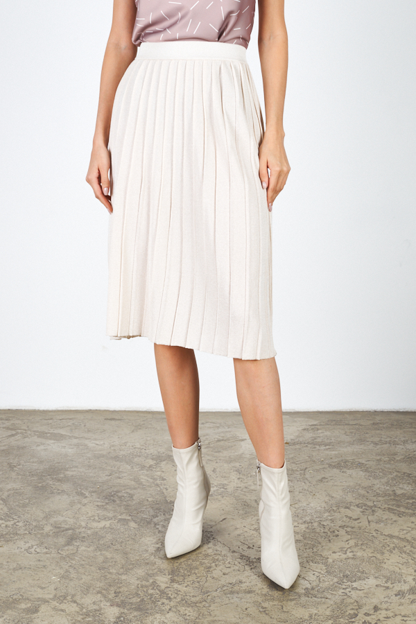 Юбка плиссе с притачным поясом. Изделие выполнено из шелковистой вискозной пряжи.