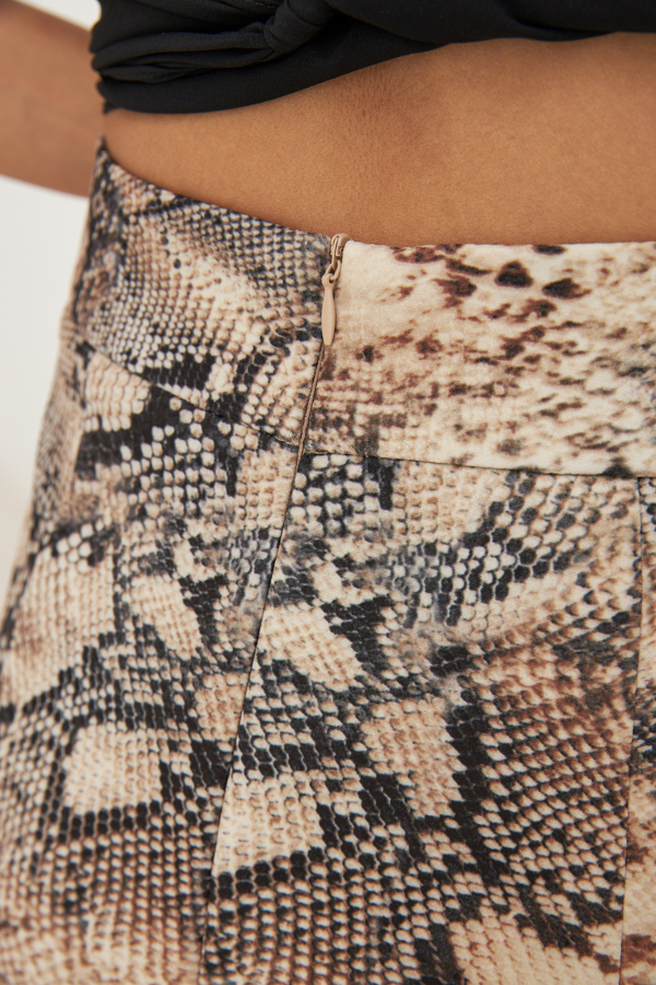 Юбка прилегающего силуэта из эластичной, костюмной ткани. Сзади по среднему шву застёжка-молния, снизу разрез. Пояс притачной.