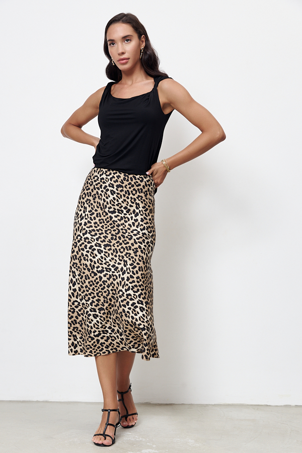 Юбка, расширенная книзу из вискозной ткани. Крой юбки по косой, на линии талии скрытая резинка.