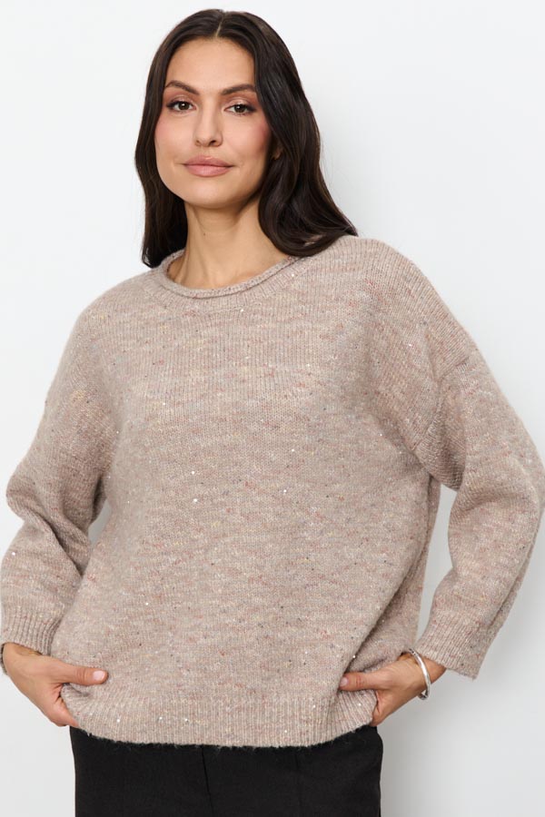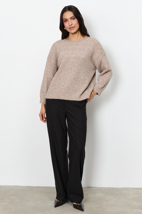Этот джемпер свободного силуэта станет вашим любимым элементом гардероба. Длинные рукава со спущенной проймой обеспечивают комфортную посадку и расслабленный вид. Круглый вырез горловины оформлен аккуратной резинкой с руликом.