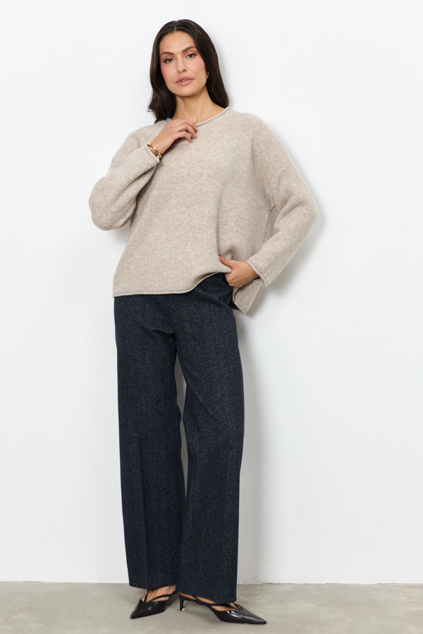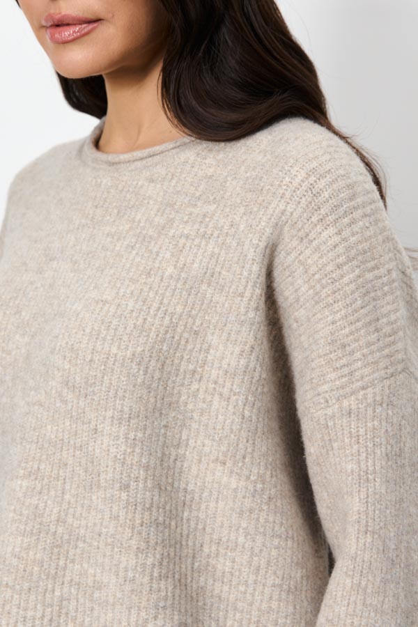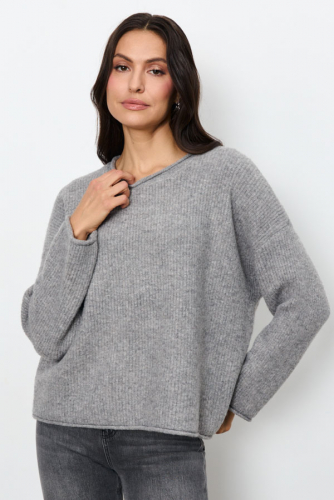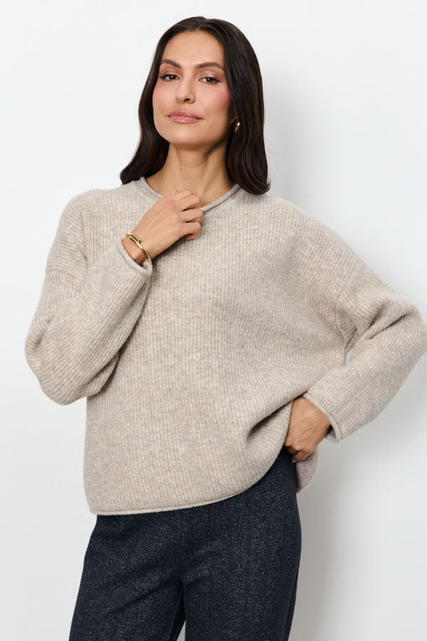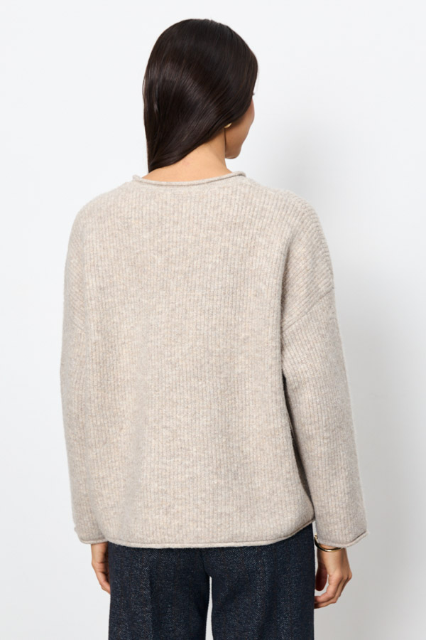 Этот джемпер – воплощение комфорта и стиля. Его свободный силуэт и мягкая фактура в рубчик создают расслабленный, но элегантный образ. Длинные рукава со спущенной проймой добавляют непринужденности. Круглый вырез горловины, низ рукавов и низ изделия оформлены аккуратной резинкой с руликом. Изделие выполнено из меланжевой пряжи.