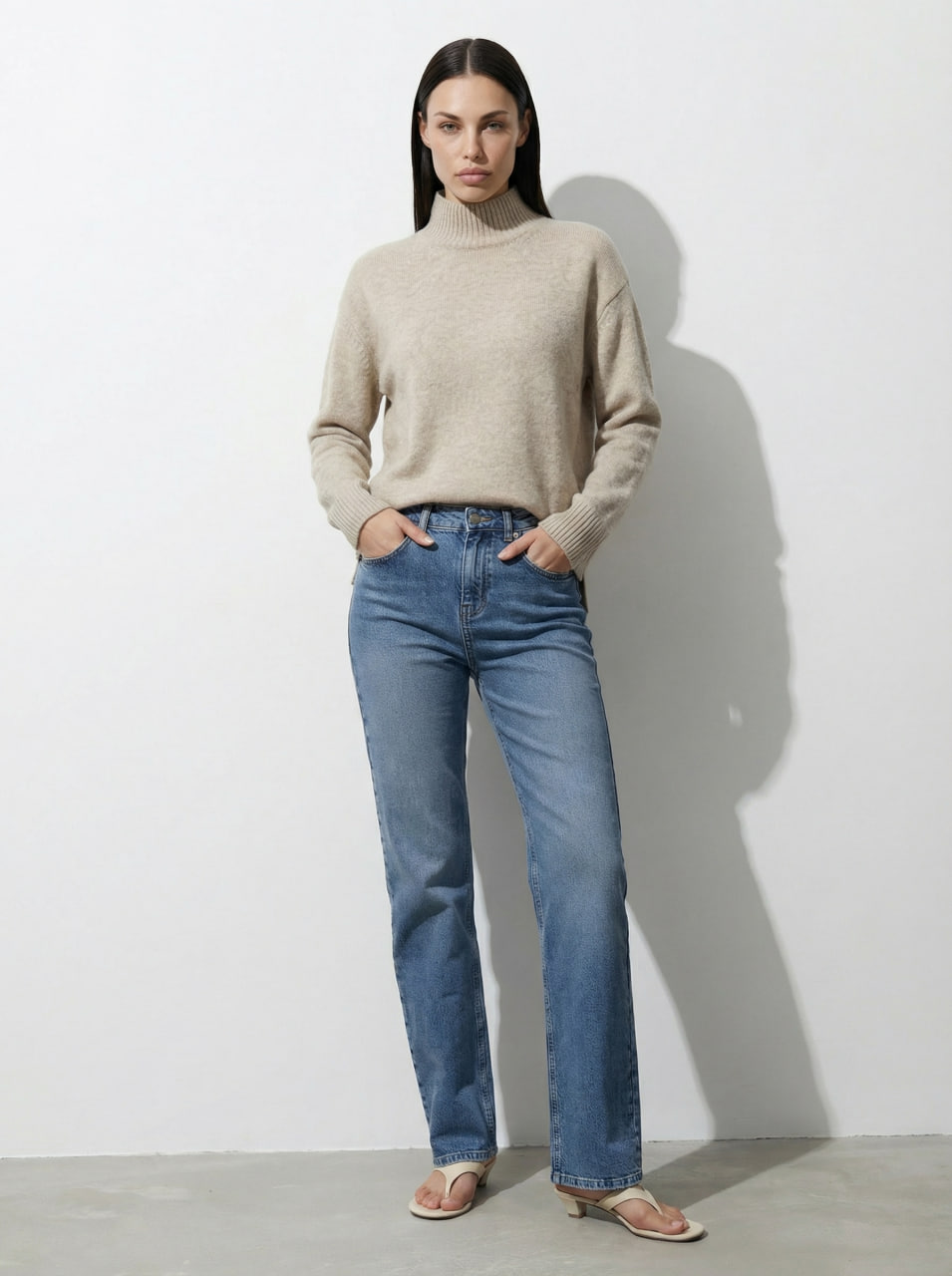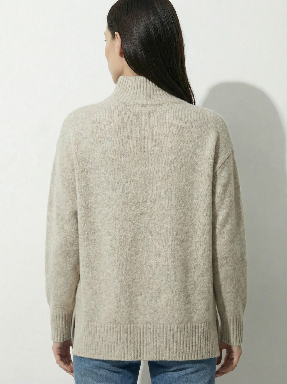 Этот джемпер – воплощение комфорта и стиля. Его свободный силуэт с разрезами по бокам создает расслабленный, но элегантный образ. Длинные втачные рукава добавляют непринужденности, а воротник-стойка придает завершенность. Изделие выполнено из меланжевой пряжи.