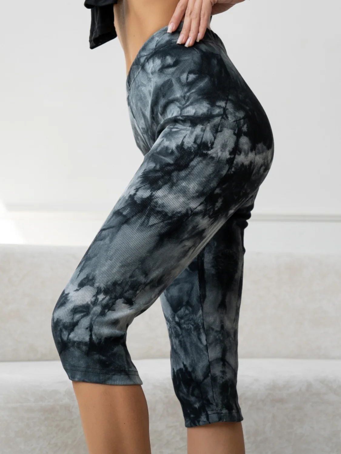 Женские бриджи в рубчик с эффектом варенки из плотного трикотажа: 95% хлопок, 5% лайкра, мягкие и эластичные, хорошо держат форму, окраска в технике тай-дай для яркого акцентного образа. Отлично сочетаются с оверсайз‑футболками, короткими топами и кедами, идеальны для повседневной носки и занятий спортом.