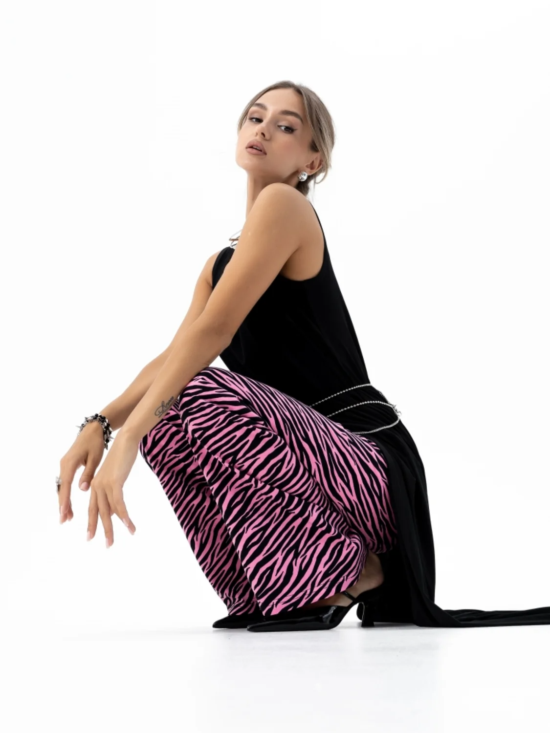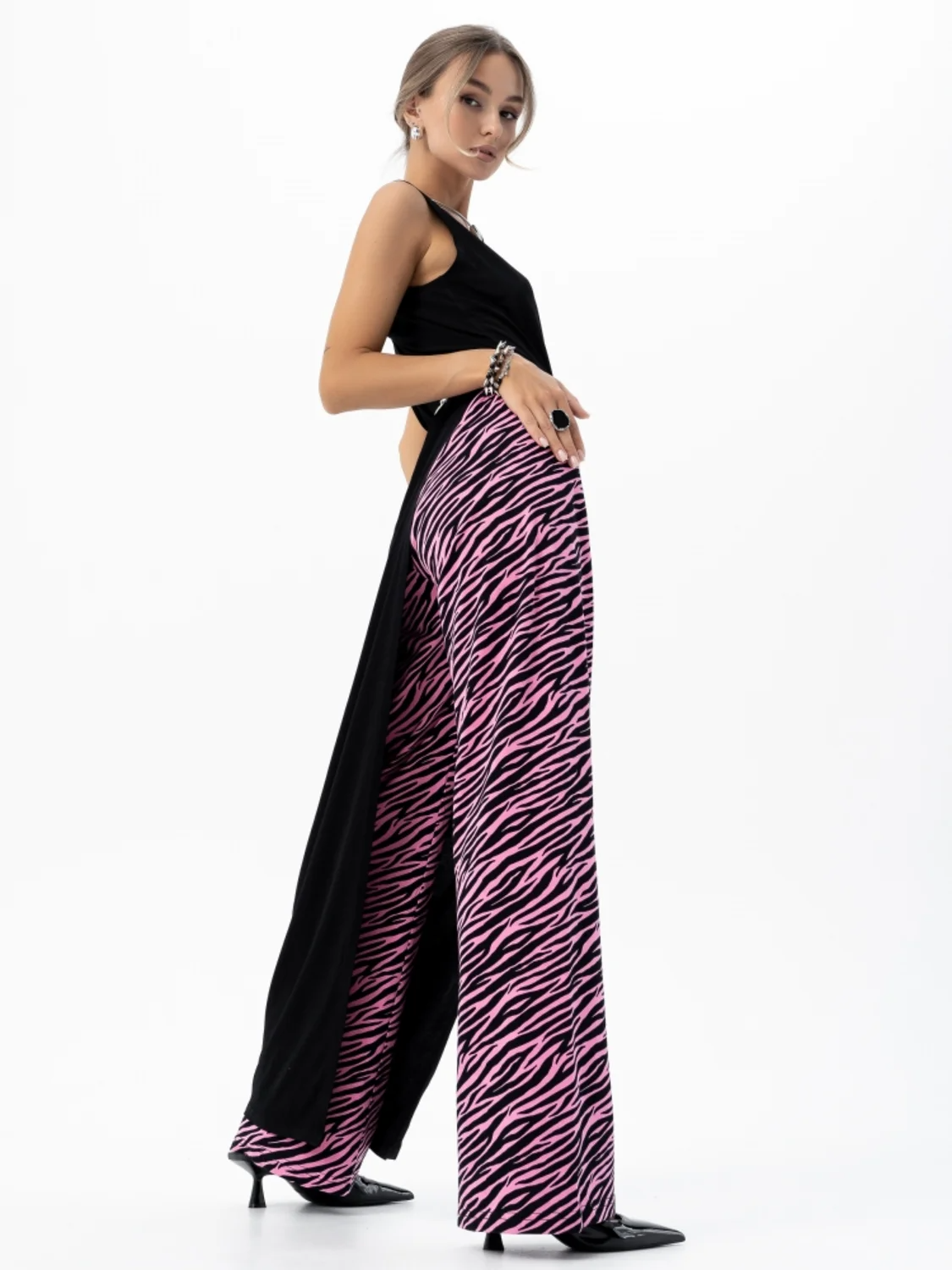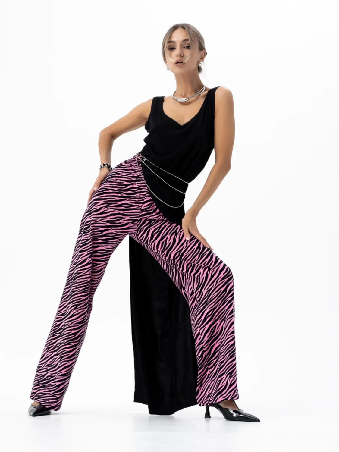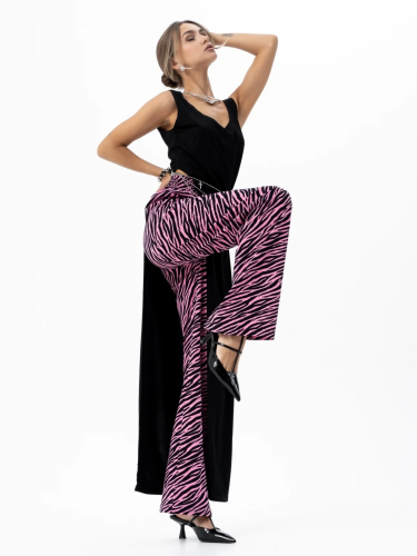 Принт зебра на брюках добавляет оригинальности и делает их отличным выбором для создания модных и ярких образов. Они хорошо сочетаются с различными видами обуви и верхней одежды, что позволяет экспериментировать и находить новые интересные комбинации.