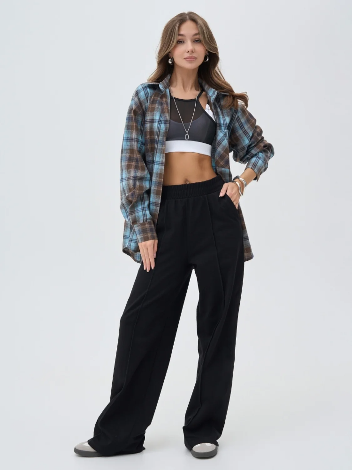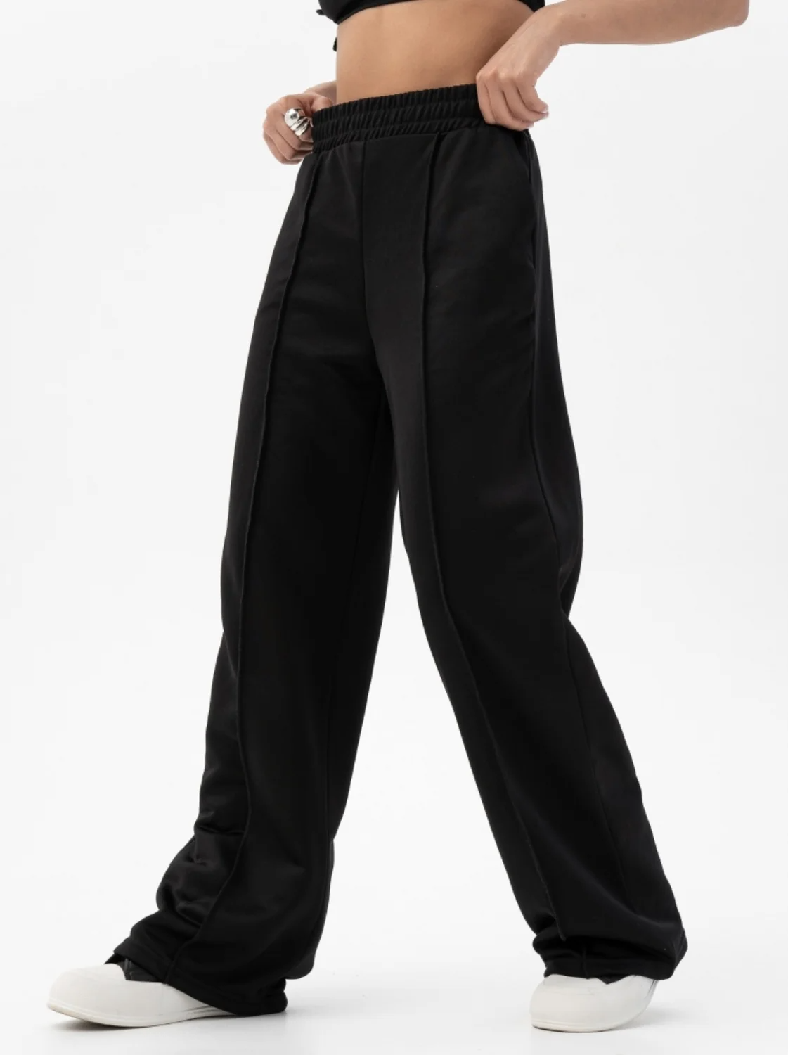 Брюки палаццо — это идеальный выбор для тех, кто ценит комфорт и стиль. Их изюминкой является декоративный шов, который проходит спереди и сзади, придавая брюкам особую элегантность. Мягкий пояс на резинке обеспечивает отличную посадку и удобство, а шнурок внутри позволяет регулировать размер. Дополнительно, брюки оснащены удобными карманами, что делает их практичными для повседневной носки. Создайте стильный образ с брюками палаццо и наслаждайтесь каждым шагом!