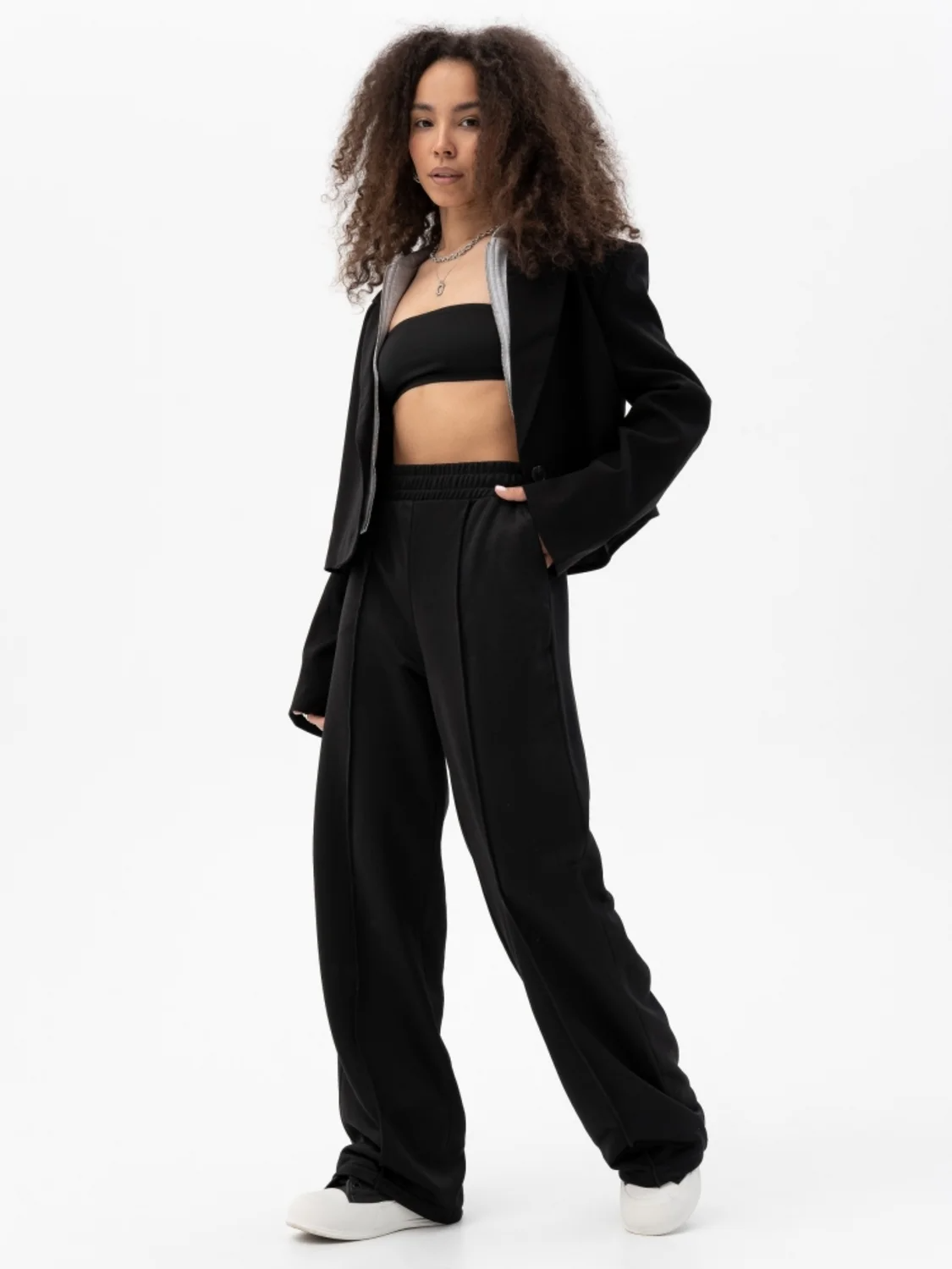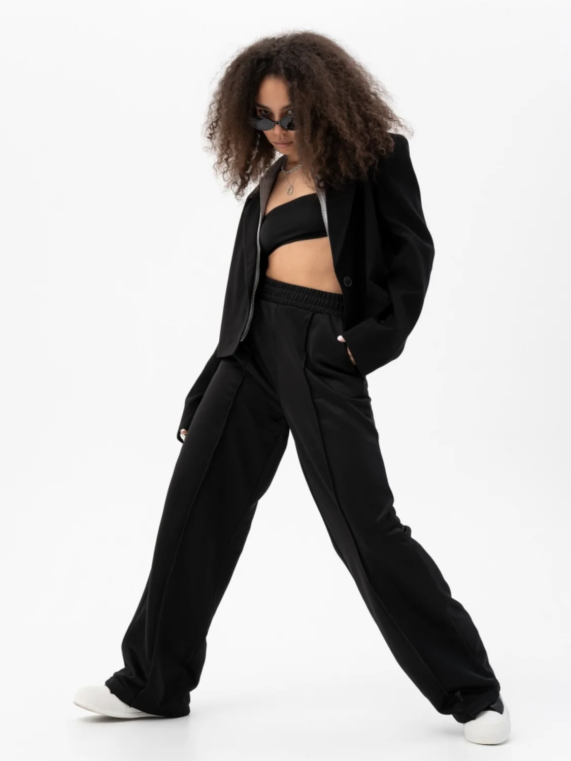 Брюки палаццо — это идеальный выбор для тех, кто ценит комфорт и стиль. Их изюминкой является декоративный шов, который проходит спереди и сзади, придавая брюкам особую элегантность. Мягкий пояс на резинке обеспечивает отличную посадку и удобство, а шнурок внутри позволяет регулировать размер. Дополнительно, брюки оснащены удобными карманами, что делает их практичными для повседневной носки. Создайте стильный образ с брюками палаццо и наслаждайтесь каждым шагом!