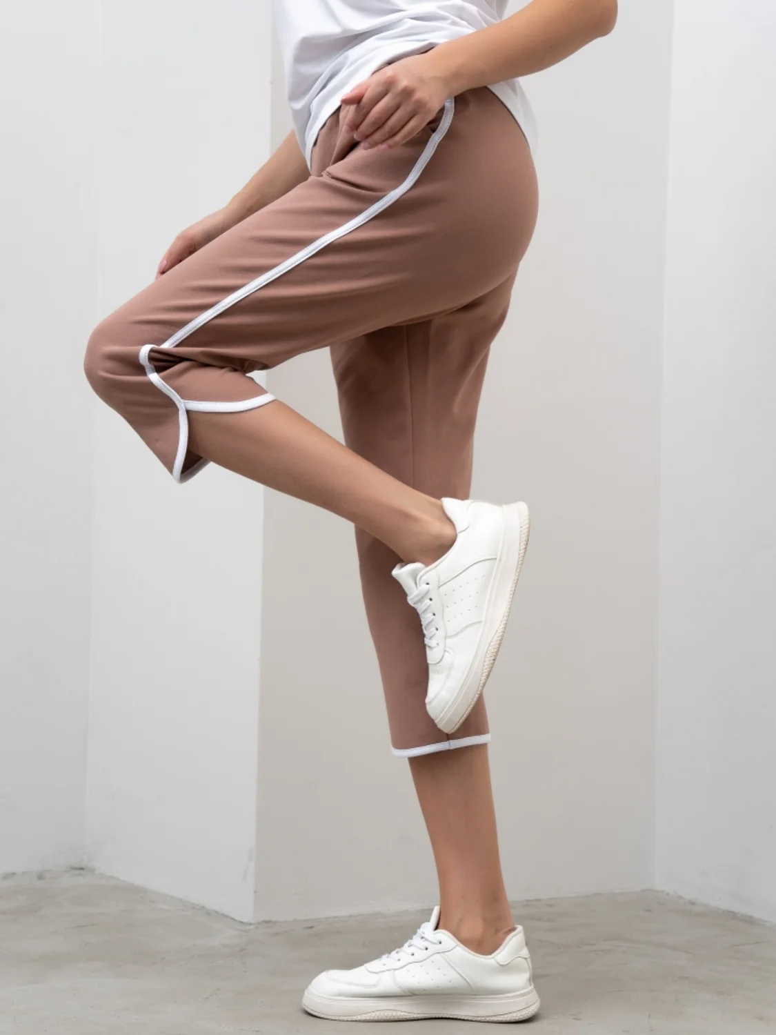 Эти женские бриджи идеально подойдут для создания стильного и комфортного образа. Изготовленные из мягкого и дышащего материала, они обеспечивают максимальный комфорт в течение всего дня. Декоративный кант по боковым швам и низу добавляет изюминку и стильный акцент, подчеркивая линию ног.