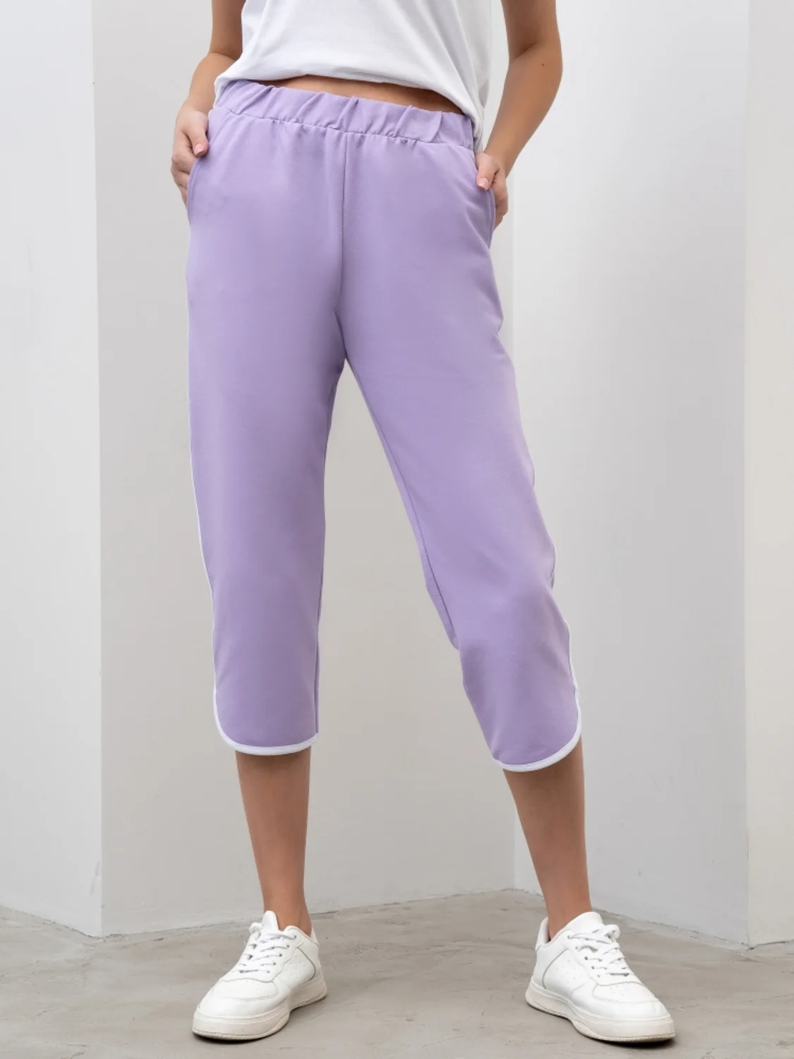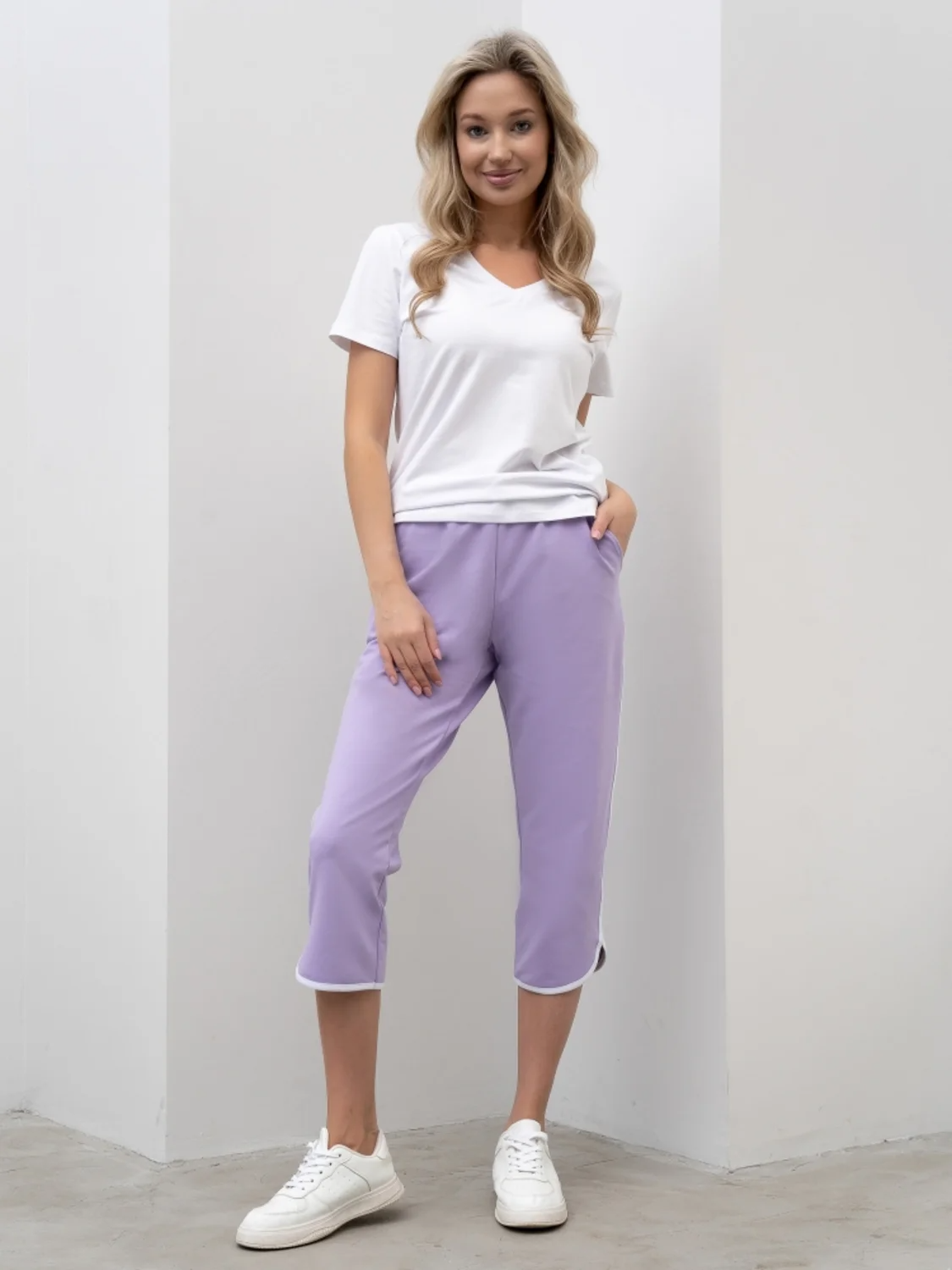 Эти женские бриджи идеально подойдут для создания стильного и комфортного образа. Изготовленные из мягкого и дышащего материала, они обеспечивают максимальный комфорт в течение всего дня. Декоративный кант по боковым швам и низу добавляет изюминку и стильный акцент, подчеркивая линию ног.