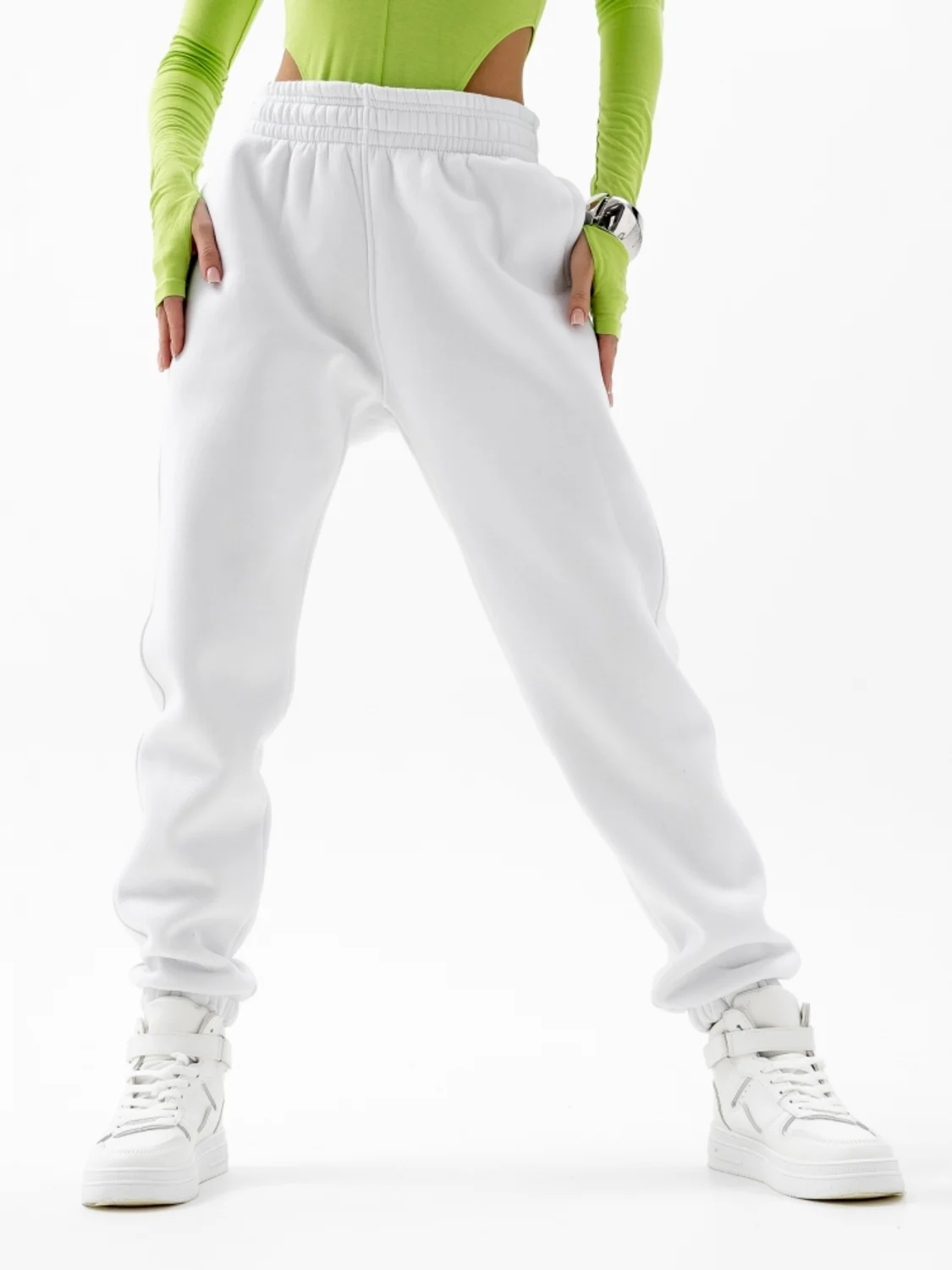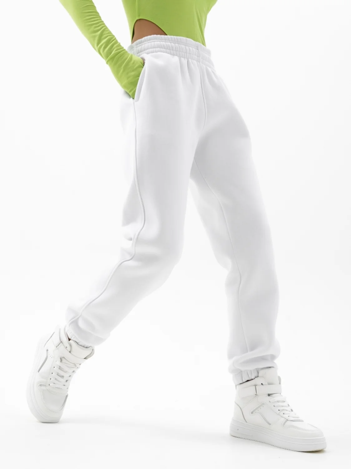 Брюки предназначены для активных девушек, которые в уличной моде делают ставку на комфорт и непринужденность. Идеальный комплект для повседневной носки - брюки в спортивном стиле в сочетании с жилетом прямого кроя с капюшоном или свитером «оверсайз». Прослойки воздуха густого начеса изнанки создают своеобразные тепловые ловушки, что не допускает возможное быстрого переохлаждения организма в холодное время года. Широкий размерный ряд дает возможность выбора брюк на любой тип фигуры.