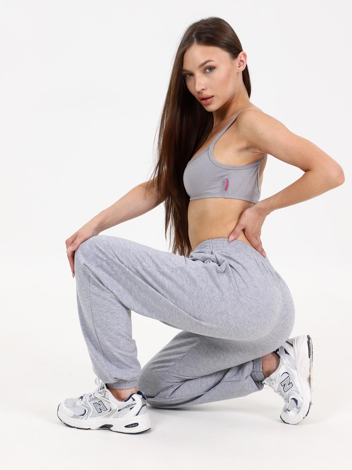 Брюки свободного покроя в стиле "over size" с карманами в боковых швах. Верх брюк с эластичной тесьмой, низ с манжетами. Пояс и манжеты прострочены на поясной машине.