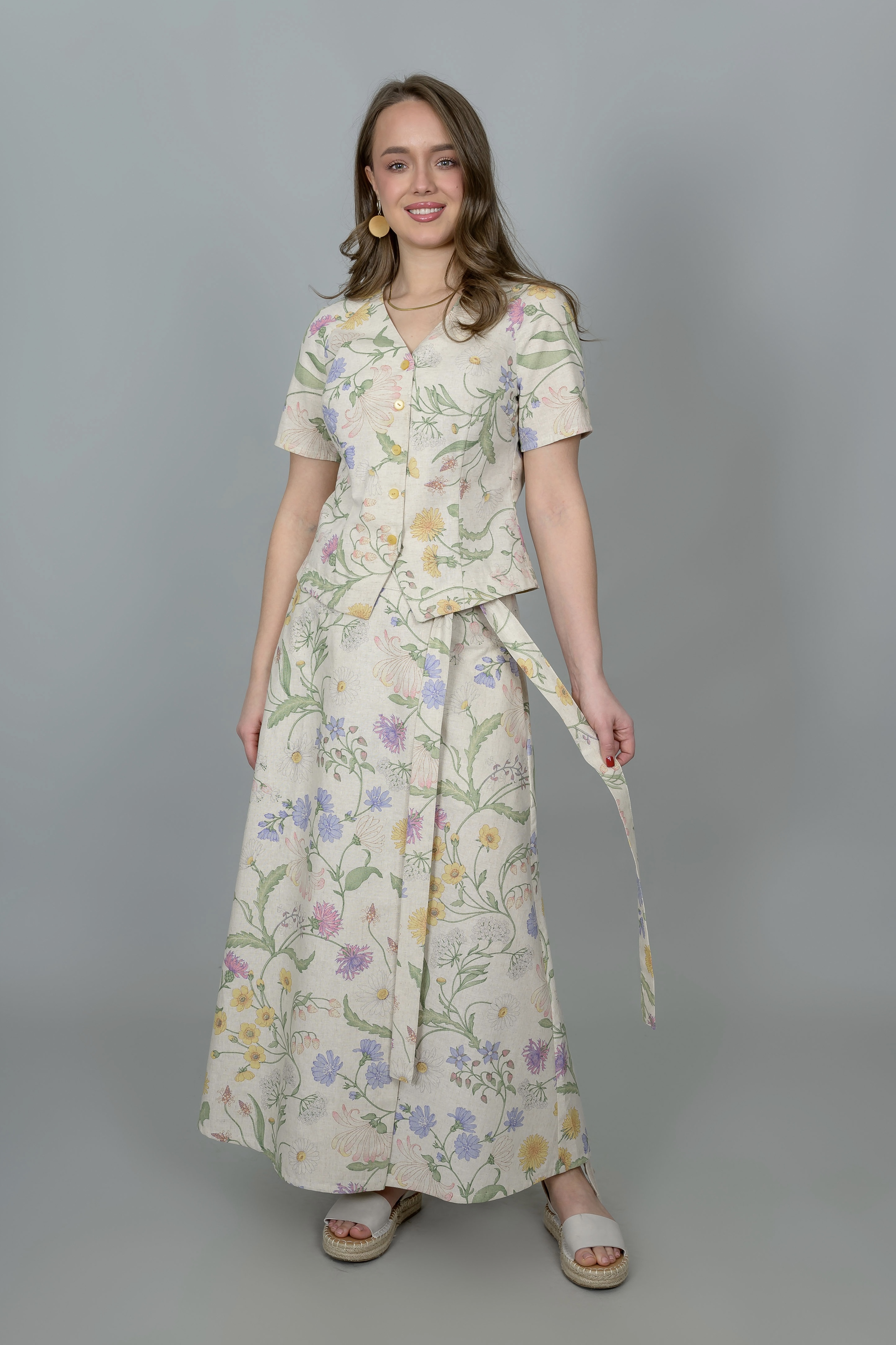 На фото блузка представлена с брюками арт.033Л, юбкой арт.056Л.