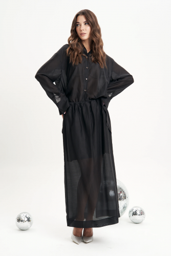 Невероятная блуза свободного силуэта, рубашечного покроя, рукав длиной 3/4, эффектная драпировка по переду и кокетливый пояс-завязка по спинке.