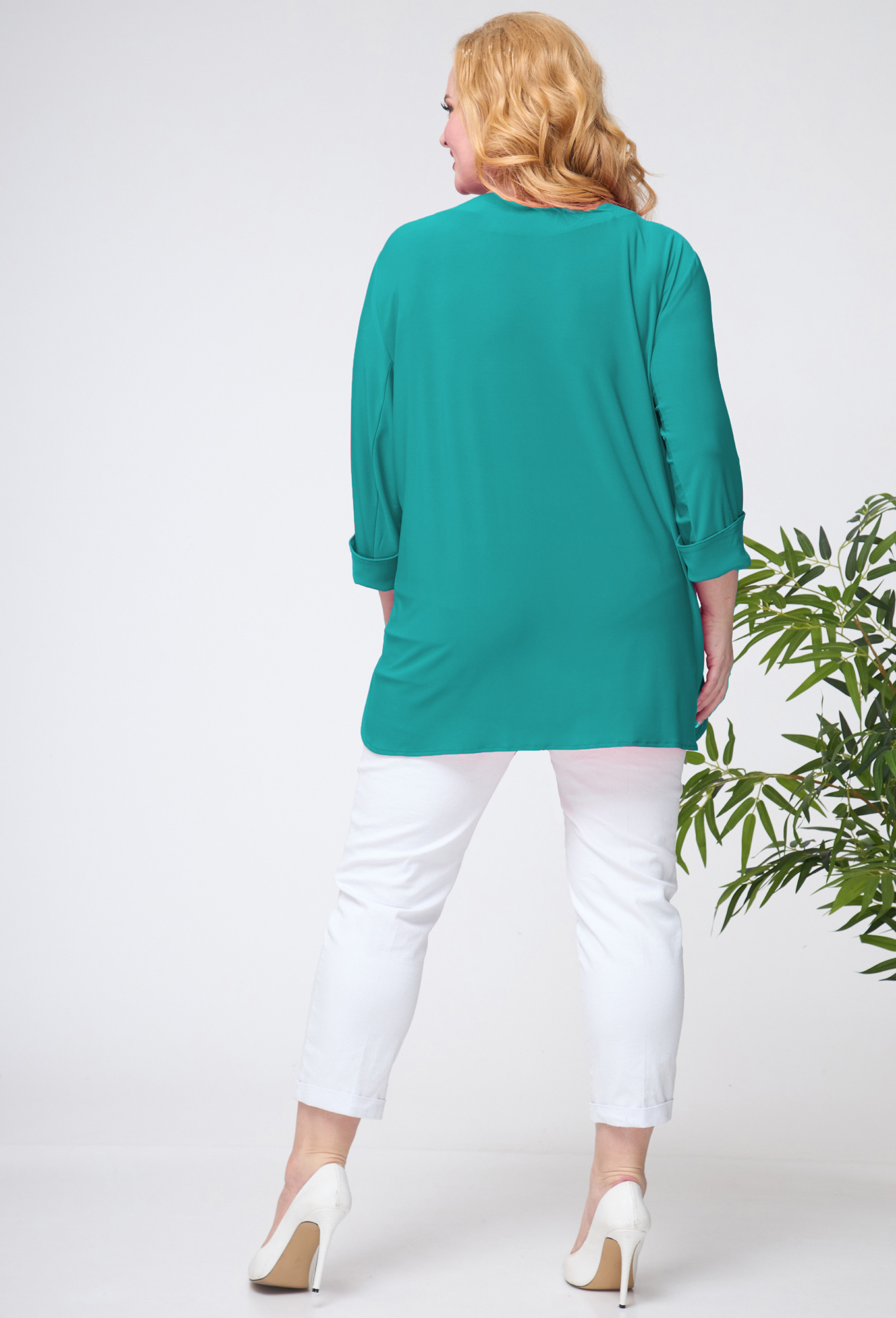 Модель: Анастасия 774 бирюза Рост..показать: 164 см (девушка на фото ростом 170см) Сезон: круглогодичный Тип ткани: ПЭ-95% Спандекс-5%Блуза женская из трикотажного полотна (масла). Модель прямого силуэта по полочке идет рельеф и выточка по груди. Рукав 3/4 длины с отложным манжетом. По боковым швам разрезы, низ фигурный. Длина спинки: (62-66)- 80см. Длина рукава: (62-66)- 45см.: 164 см (девушка на фото ростом 170см)