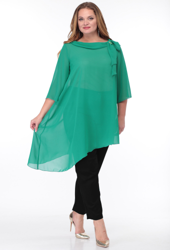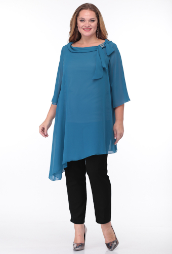 Модель: Анастасия Мак 660Б голубой ..показатьi>Рост: 164 см (девушка на фото ростом 170см) Сезон: Круглогодичный Тип ткани: Шифон - 100% Полиэстер;Блуза - 96% Полиэстер, 4% Спандекс;Костюм состоит из блузки и брюк. Блузка выполнена из однотонного шифона, в качестве подкладки в блузе использовано однотонное трикотажное полотно. Брюки выполнены из однотонной ткани. Блузка А-образного силуэта, с асимметричным низом. Горловина овальной формы, обработана воротником-планкой, спереди по левой части горловины декор из шифона и броши. Спинка со средним швом . Рукав одношовный, втачной, длиной 3/4 , расширенный по низу. Нижняя часть блузки - подкладка в виде майки. Полочка майки с нагрудными вытачками, спинка цельная.i>Рост: 164 см (девушка на фото ростом 170см) Сезон: Круглогодичный Тип ткани: Шифон - 100% Полиэстер;Блуза - 96% Полиэстер, 4% Спандекс;
