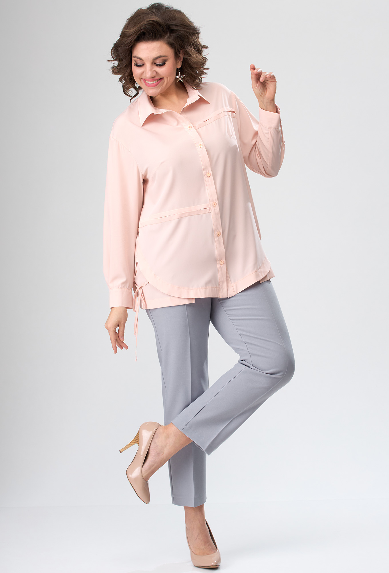 Модель: Анастасия Мак 920 персик ..показатьРост: 164 см (девушка на фото ростом 170см) Сезон: Круглогодичный Тип ткани: 100% ПЭБлузка прямого силуэта , выполнена из однотонной ткани._x000D_