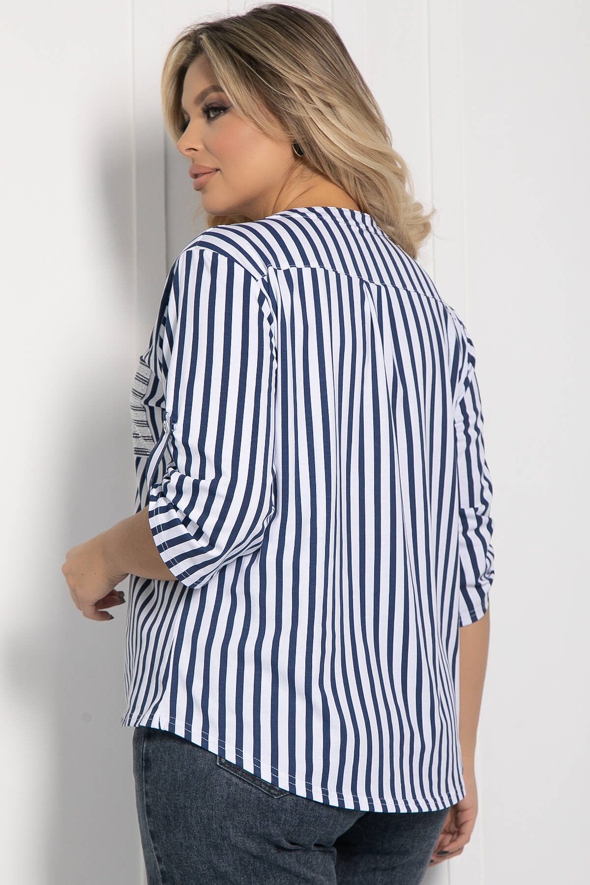 Рубашка выполнена из очень приятной и легкой ткани, которая слегка тянется, что делает её идеальным выбором для весны и лета. Удобная центральная застежка на пуговицах позволяет легко регулировать степень открытости. Карманы декорированы стразами. Рукав на пате можно носить двумя способами: как длинный или закатанный, что позволяет варьировать стиль в зависимости от вашего настроения или погодных условий. Эта рубашка станет универсальной вещью в вашем гардеробе, легко сочетаясь с различными предметами одежды.