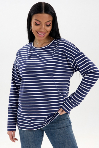 Лонгслив выполнен в мягких синих оттенках, темный индиго и светлый оттенок лазурного голубого, гармонично сочетается с линиями кроя и создает Ваш достойный образ.