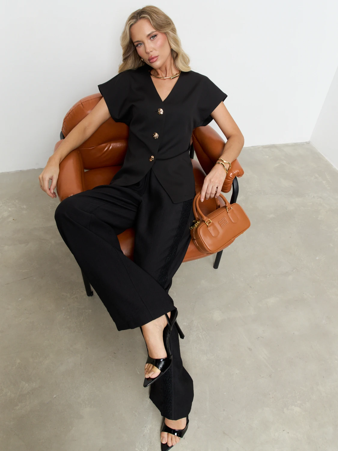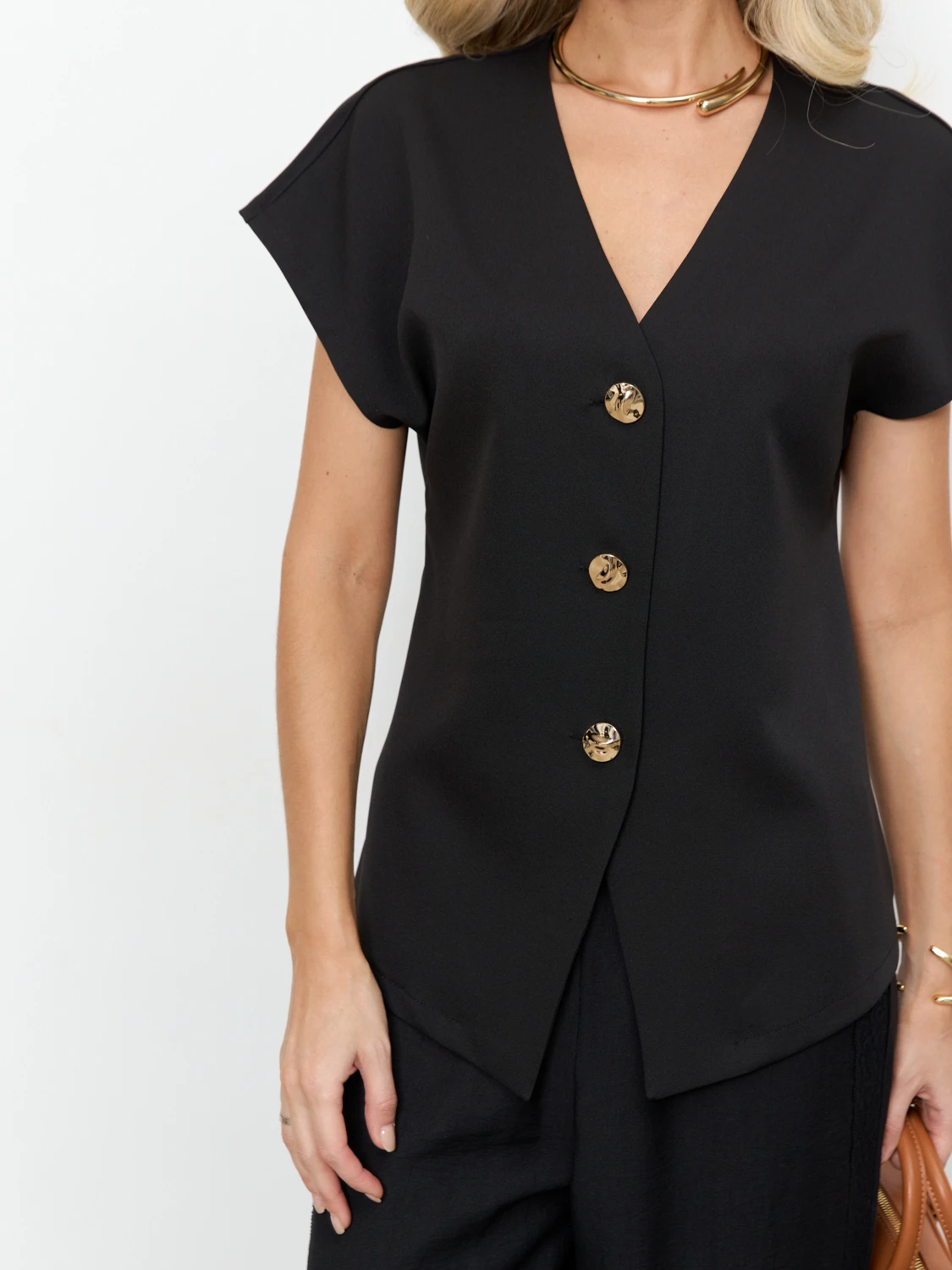 Элегантный жакет  с коротким рукавом из костюмной ткани.