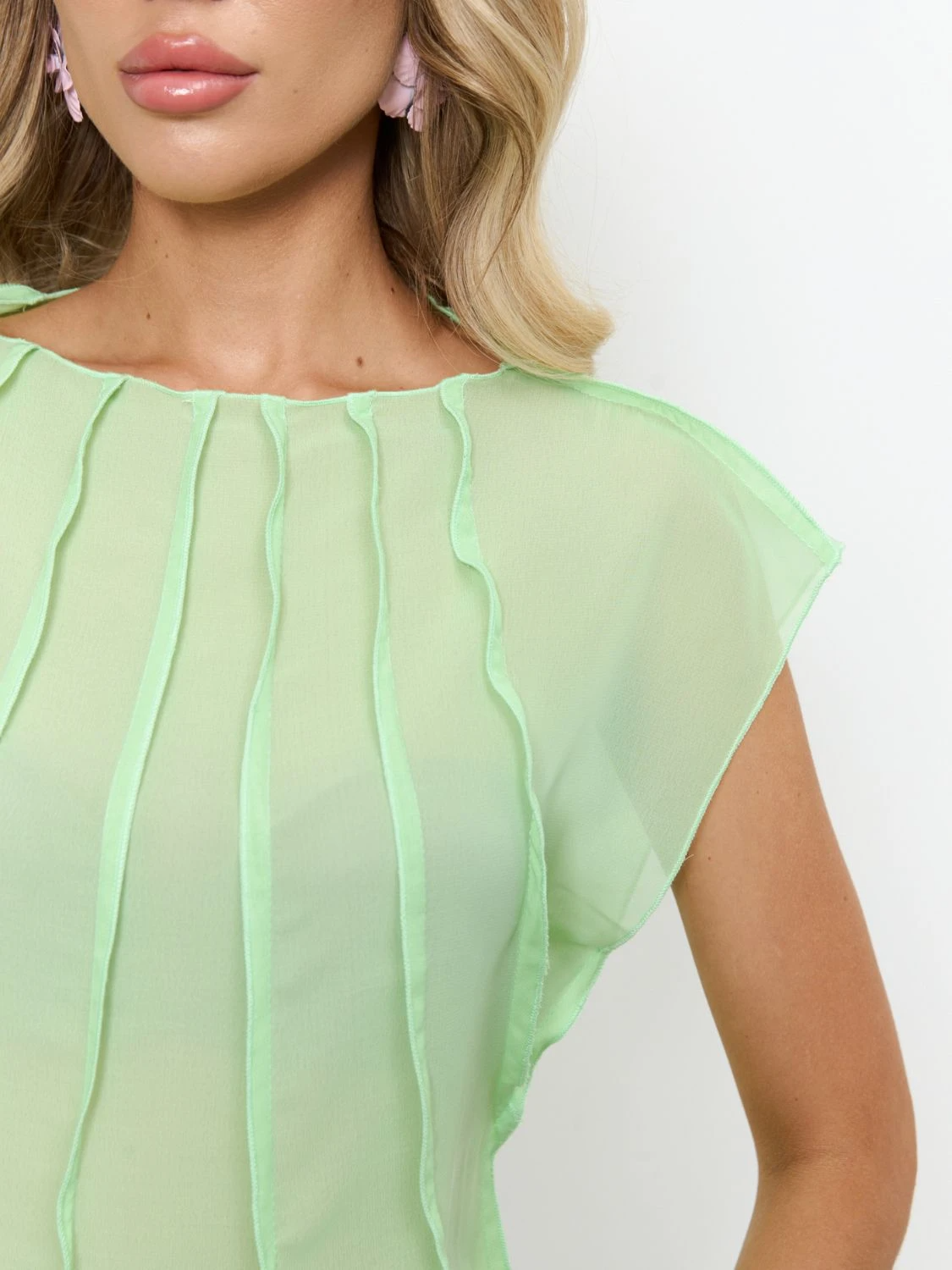 Блуза из креп-шифона с декоративными вертикальными отстрочками по всему изделию.